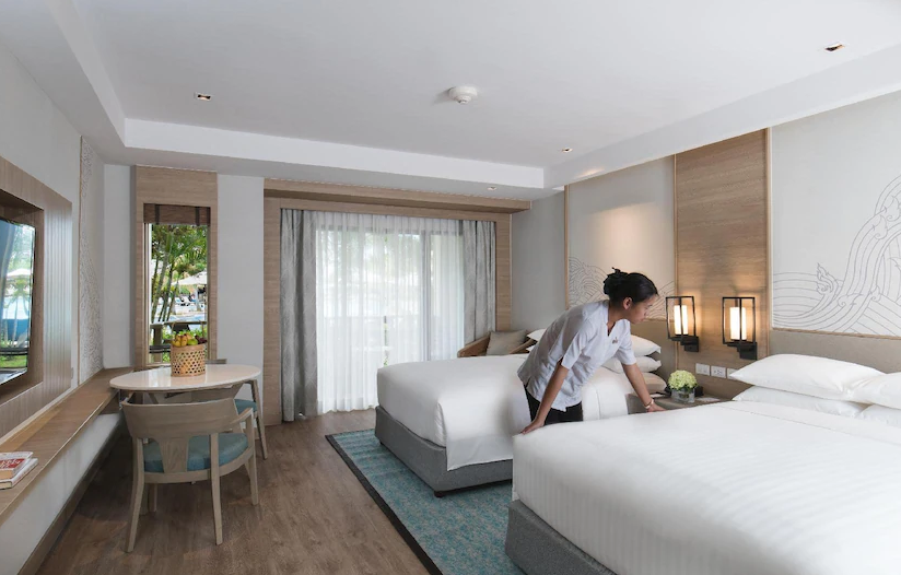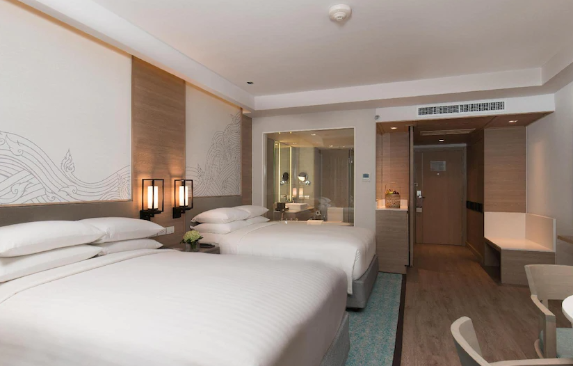 푸켓 메리어트 리조트 앤 스파 멀린비치(Phuket Marriott Resort & Spa, Merlin Beach)에는 총 414개 객실 중 한 곳에 들어서는 순간 하루의 스트레스를 날려버릴 수 있으며, 대부분의 객실에 옷장, 무료 차, 타월, 옷걸이, 슬리퍼 등과 같은 다양한 편의 시설/용품이 구비되어 있습니다.
