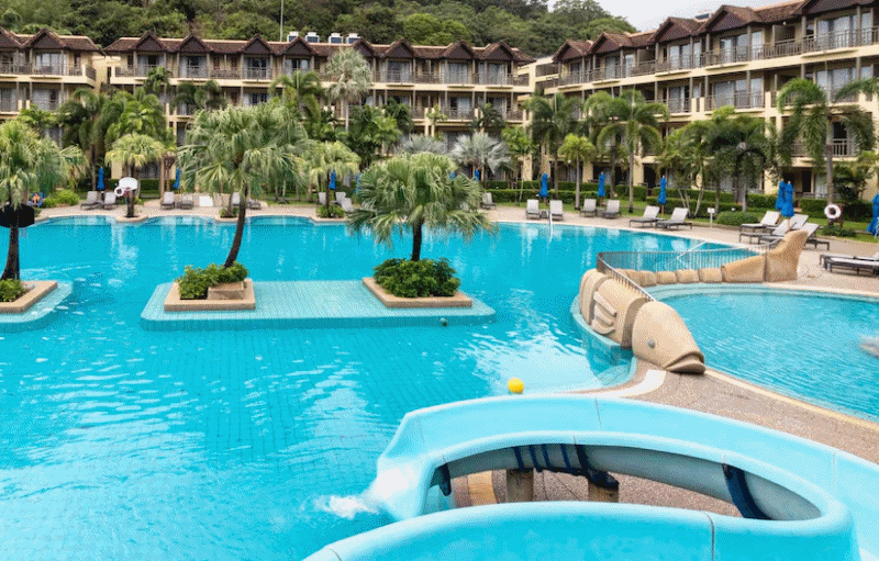 조용한 리조트 넓은 수영장”