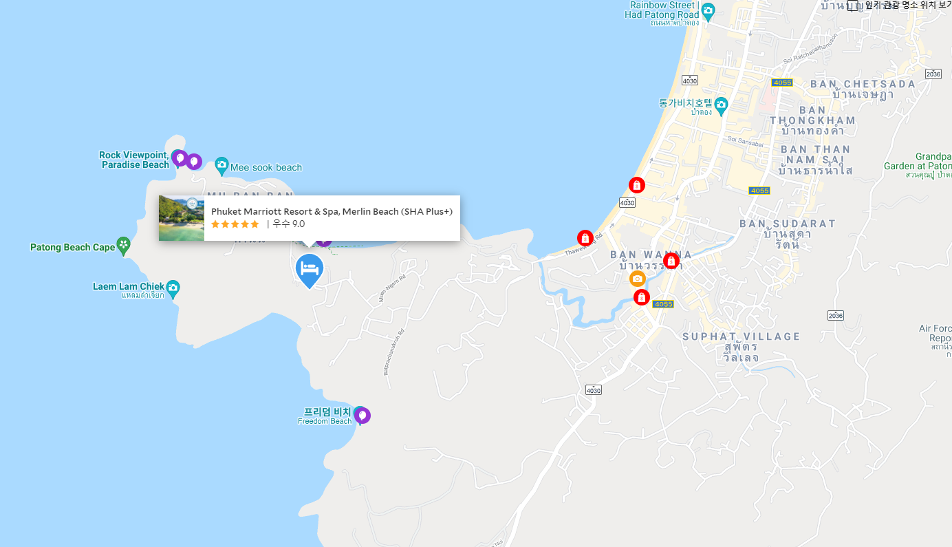 푸켓의 볼거리와 사운드를 즐기고 싶다면 푸켓 메리어트 리조트 앤 스파 멀린비치(Phuket Marriott Resort & Spa, Merlin Beach)는 탁월한 선택입니다. 도심에서 단 5 km 거리에 있는 본 숙소는 투숙객이 빠르고 쉽게 지역의 많은 명소들을 즐길 수 있는 위치적 이점이 있습니다. 본 숙소는 도시의 필수 관광 명소에 손쉽게 접근할 수 있는 편리한 위치를 자랑합니다.