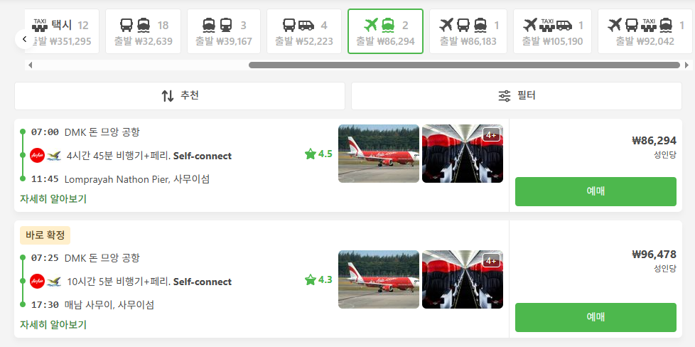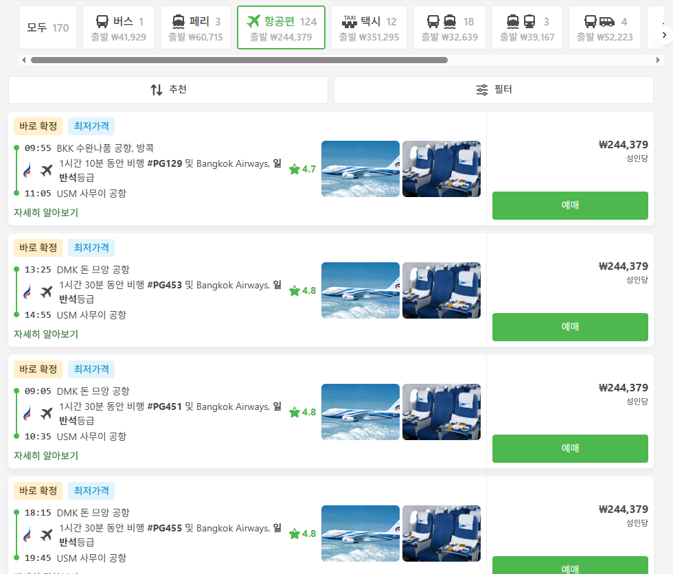 #방콕에서코사무이교통편비교