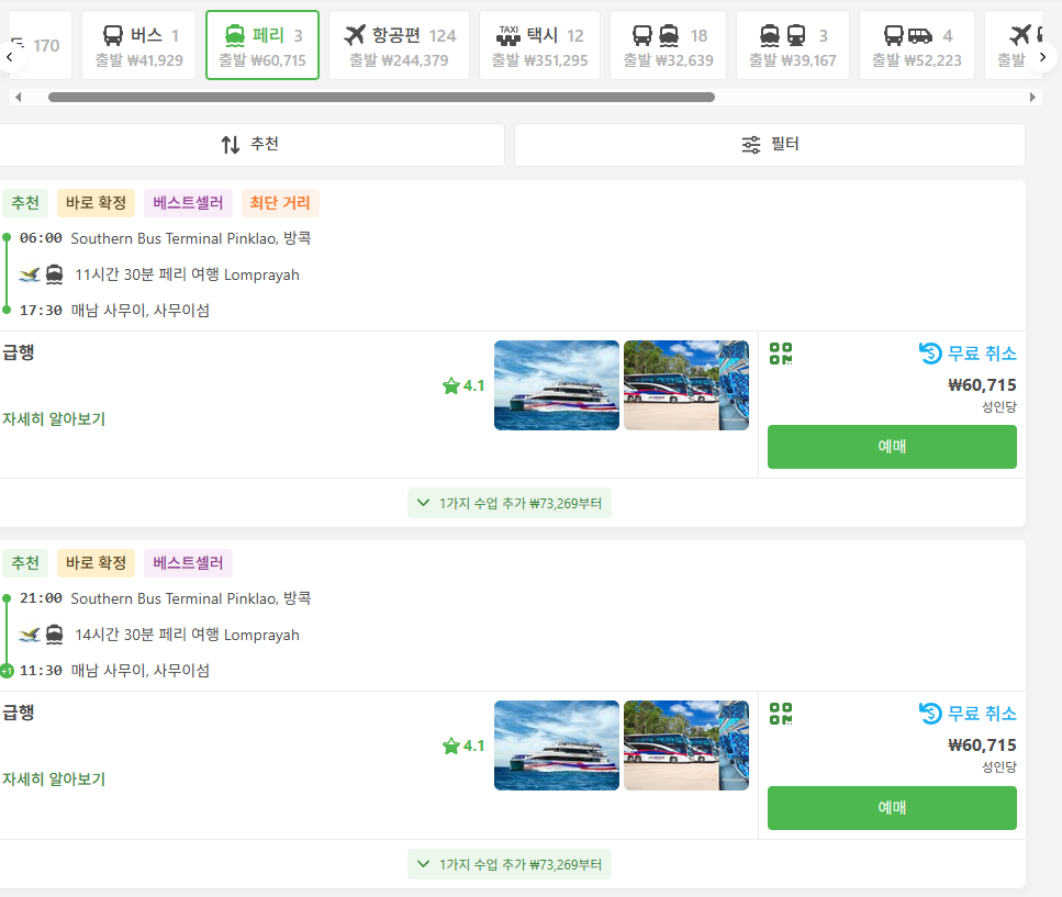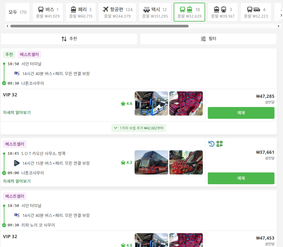#태국버스예약사이트 #태국페리예약사이트