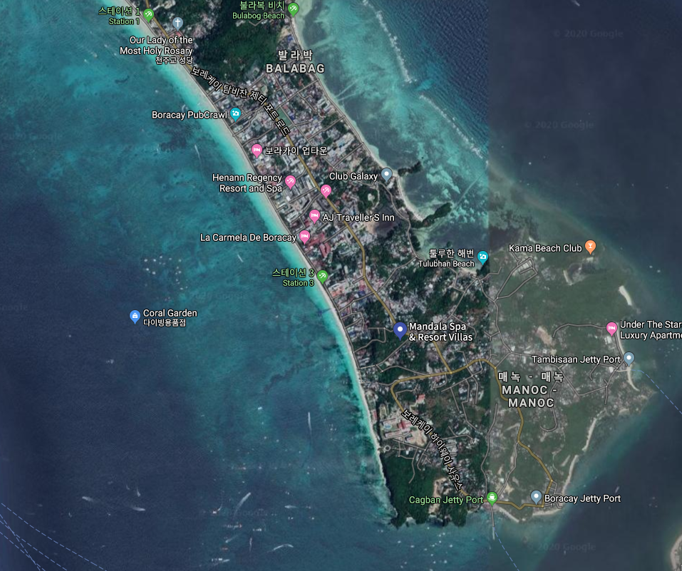 보라카이의 번화가에서 트라이시클타고 50 ~ 150 페소 정도 거리에 있는