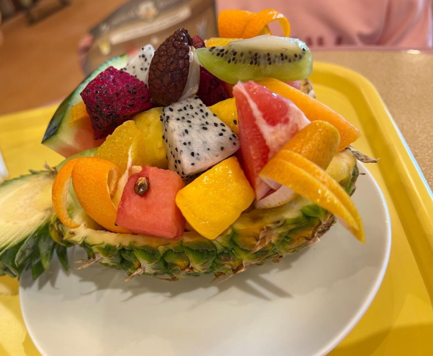 모험을 마치고 나면, 카페에서 ‘프루츠 보드’(파인애플 그릇 과일 모둠)와 ‘프루츠 마운틴’(블루실 아이스크림과 과일 산)을 즐길 수 있어요. 망고 빙수, 열대 과일 주스, 계절 한정 구운 과일 디저트도 준비되어 있어요. 훈훈한 휴식의 시간을 보내기에 딱이죠 .