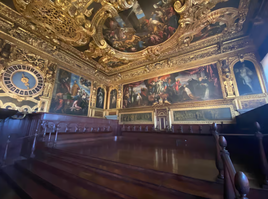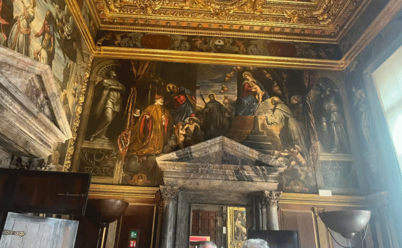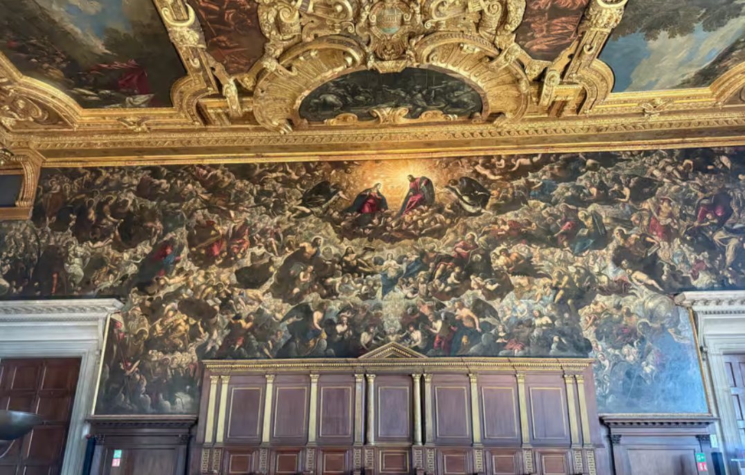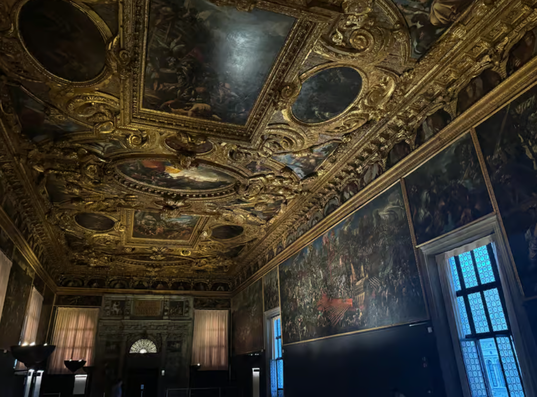 궁전 안에는 베네치아 공화국의 역사와 영광을 담은 수많은 걸작들이 전시되어 있습니다. 틴토레토와 베로네세 같은 대가들의 작품들이 궁전 벽면과 천장을 가득 채우고 있으며, 그 규모와 섬세함에 압도당하실 겁니다. 특히 '천국'을 주제로 한 틴토레토의 대형 그림은 직접 가서 보셔야만 그 웅장함을 제대로 느낄 수 있어요.