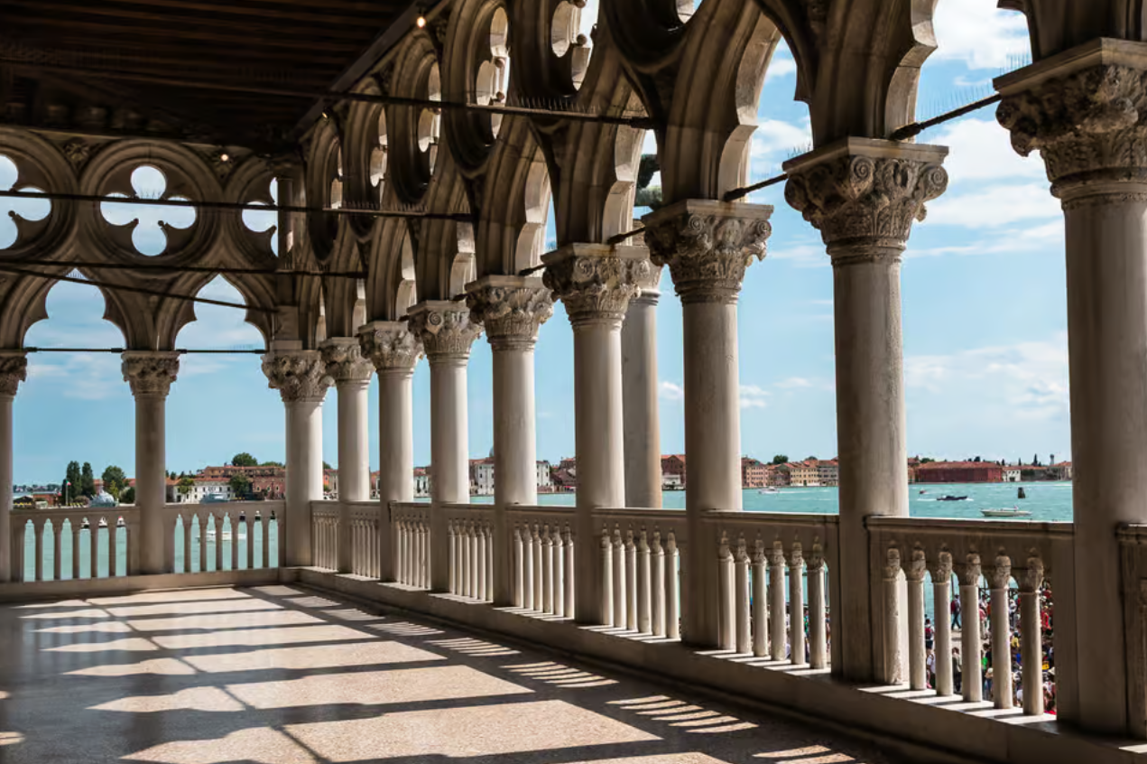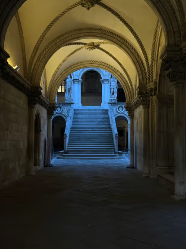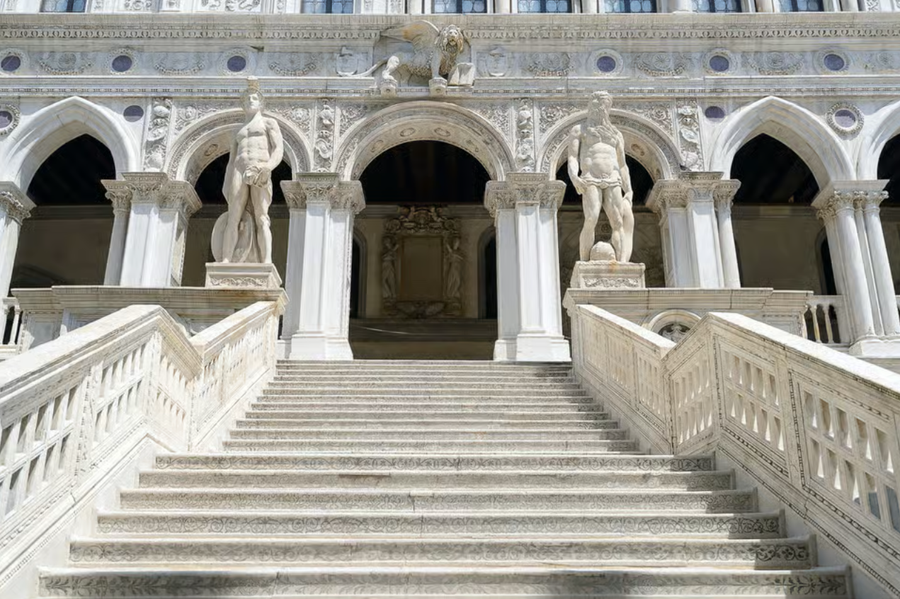 궁전의 외관은 분홍빛 대리석과 흰색 이스트리아 석재가 어우러져 섬세하면서도 화려한 고딕 양식의 정수를 보여줍니다. 특히, 내부에 들어서면 '황금 계단'이라 불리는 스칼라 데이 기간티(Scala dei Giganti)의 웅장함에 감탄하게 되실 거예요. 이곳을 오르내리면서 과거 베네치아 귀족들의 발자취를 느껴볼 수 있습니다.