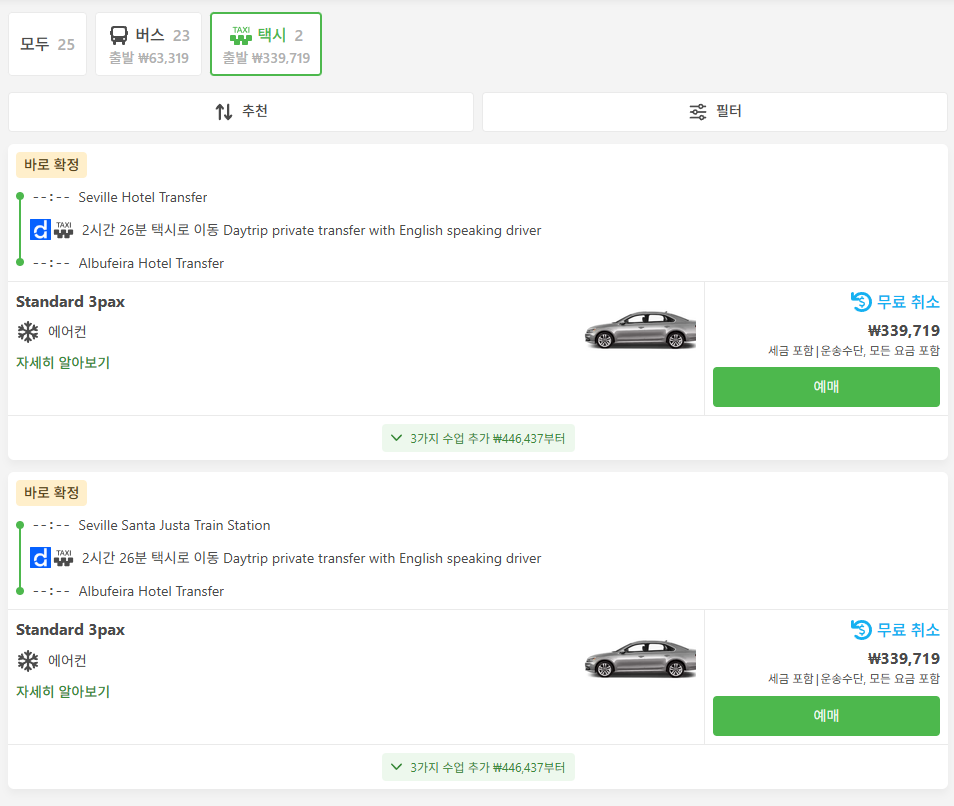 세비야에서 알부페이라로 이동하는 택시 교통편