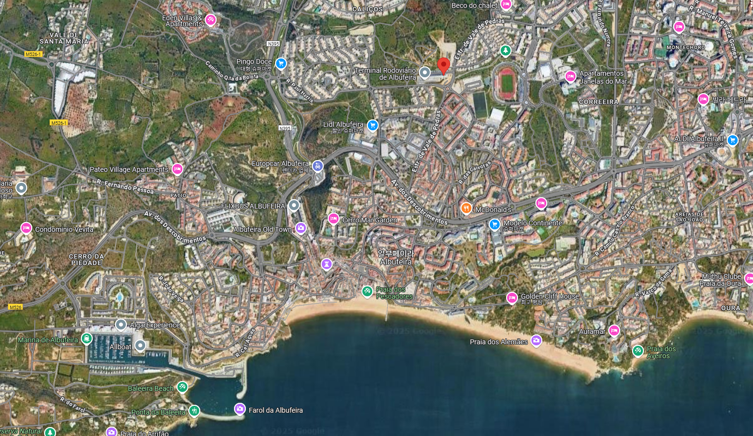 세비야가 북적이는 도시의 활기를 품고 있다면, 포르투갈 남부의 알부페이라는 그야말로 '평화롭고 여유로운 휴양지'의 전형입니다. 이 도시에 도착하면 가장 먼저 눈에 띄는 건 파란 하늘 아래 펼쳐진 황금빛 해변과 끝없이 펼쳐진 푸른 바다예요. 해변을 따라 늘어선 야자수와 잘 정돈된 리조트들이 줄지어 있는데, 마치 휴양을 위해 태어난 도시 같다는 느낌을 줍니다.