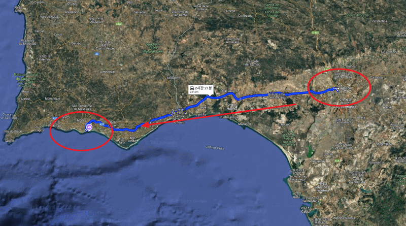 포르투갈의 리스본에서 알부페이라까지는 약 260km 정도 떨어져 있으며 이동하는 교통편으로는 버스, 기차 노선이 있습니다. 시간은 2시간 36분 ~ 2시간 45분정도 소요되며 금액은