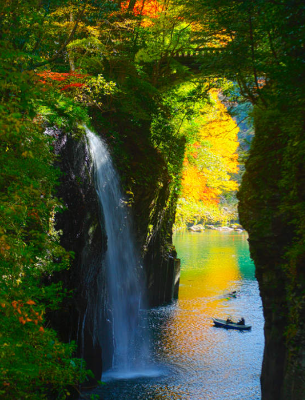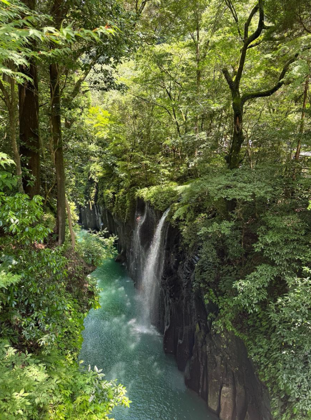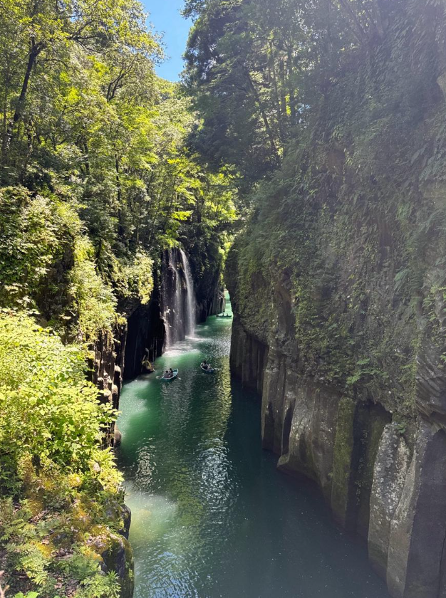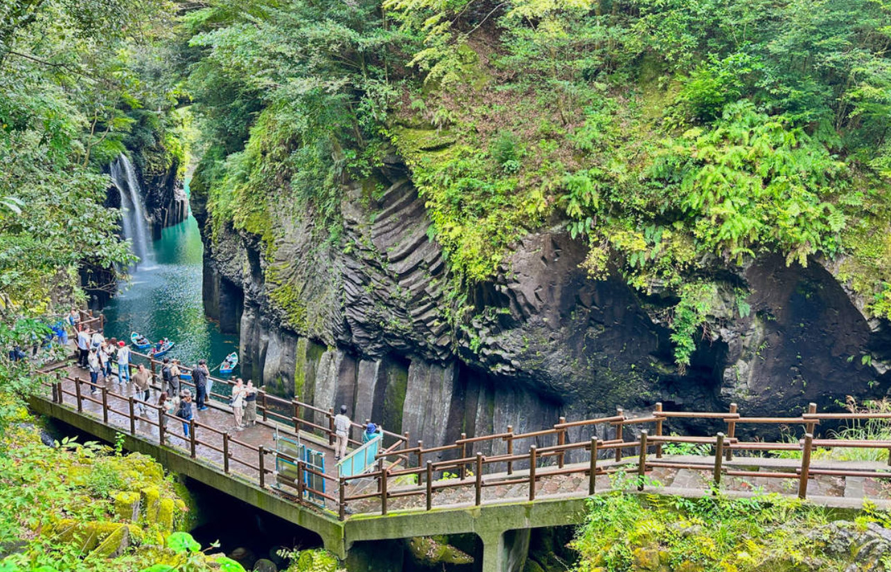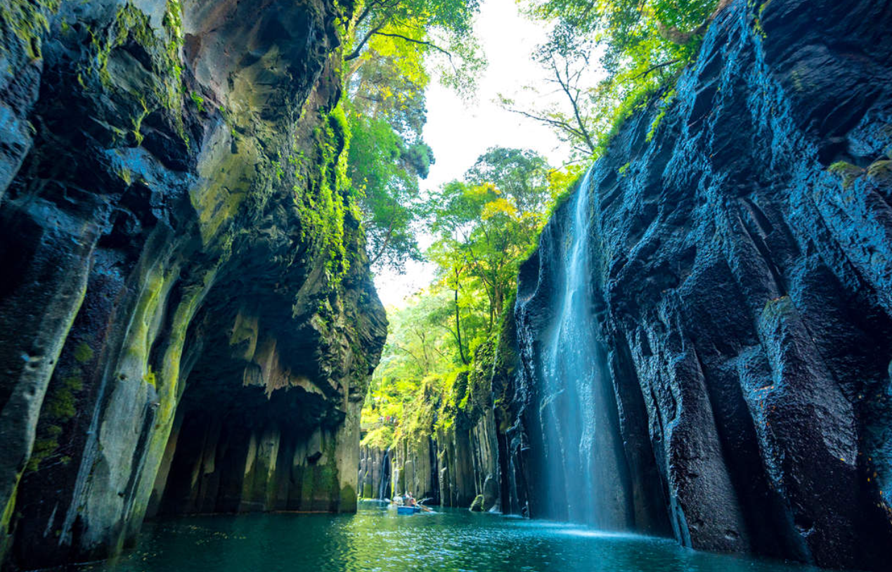 신들이 노닐던 태고의 신비로운 협곡 다카치호 협곡은 마치 다른 차원의 세계에 들어선 듯한 착각을 불러일으킬 만큼 환상적인 곳입니다. 수십만 년 전 화산 폭발로 흘러내린 용암이 강의 침식 작용으로 깎여나가며 만들어진 주상절리 절벽들은 보는 순간 경이로움을 느끼게 합니다. 특히, 협곡 사이로 부드럽게 떨어지는 마나이 폭포는 다카치호의 상징과도 같죠. 일본 건국 신화의 배경이 된 곳이기에, 이곳을 걷다 보면 어딘가 모르게 신비롭고 영적인 기운을 느낄 수 있습니다. 협곡을 따라 이어진 산책로는 복잡한 생각을 잠시 내려놓고 자연 속으로 깊이 들어갈 수 있게 해줍니다. 무엇보다 이곳의 백미는 바로 작은 노를 저어 협곡 안으로 깊숙이 들어가는 보트 체험인데요. 보트 위에서 고개를 들어 웅장한 절벽과 폭포를 올려다보면, 자연이 빚어낸 거대한 예술 작품 앞에서 저절로 감탄사가 터져 나올 거예요. 옥빛 물결 위를 유영하며 주변의 고요함과 신선한 공기를 마시면, 그 어떤 복잡한 마음도 정화되는 기분을 느끼실 겁니다.