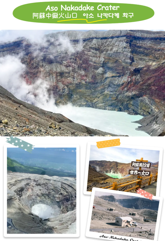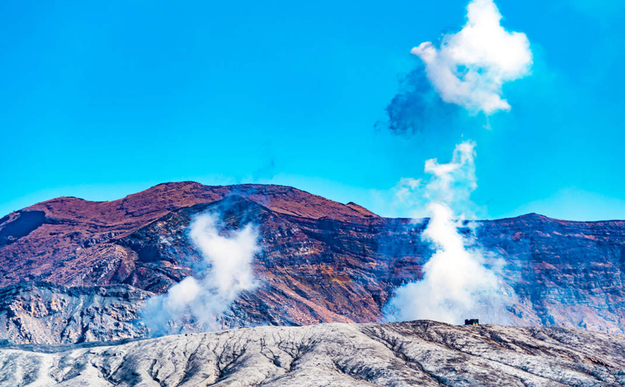 살아 숨 쉬는 지구의 심장, 활화산의 웅장함 아소산은 일본을 대표하는 활화산으로, 그 규모와 웅장함은 감히 말로 다 표현하기 어렵습니다. 세계 최대급 칼데라 안에 형성된 아소산 분화구 주변에 다다르면, 아직도 연기를 뿜어내는 활발한 분화구의 모습을 직접 볼 수 있습니다. 회색빛 암석과 피어오르는 유황 연기는 마치 지구가 살아 숨 쉬고 있다는 것을 온몸으로 증명하는 듯한데요. 이런 압도적인 풍경은 분명 일상에서는 경험하기 어려운 강렬한 인상을 남길 것입니다. 안전 규제에 따라 입장이 가능한 범위 내에서 화산의 거대한 숨결을 느끼고, 때로는 분출되는 연기와 뜨거운 열기 앞에서 자연의 거대한 힘 앞에 겸허함을 배우게 될 것입니다. 이곳에서의 경험은 단순히 풍경을 보는 것을 넘어, 살아있는 지구의 심장 박동을 느끼는 특별한 순간이 될 거예요.