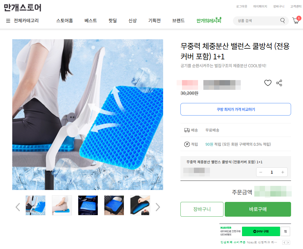 무중력 체중분산 밸런스 쿨방석은 현재 저렴한가격에 판매하고 있어 더욱 매리트 있는 제품으로 할인이벤트는 기간에 따라 조기마감할 수 있고 예고없이 가격이나 할인율이 변동될 수 있습니다. 망설이면 비싸져요~ 지금사면 저렴하게 득템할 찬스입니다.