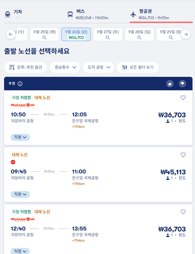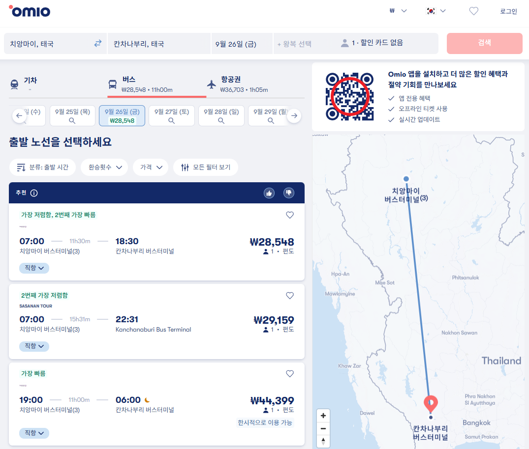 치앙마이에서 깐차나부리로 이동하는 교통편은 유명한 12go사이트를 비롯해 omio 사이트를 함께 비교해서 가성비 좋은 교통편을 이용하시는 것이 좋습니다.