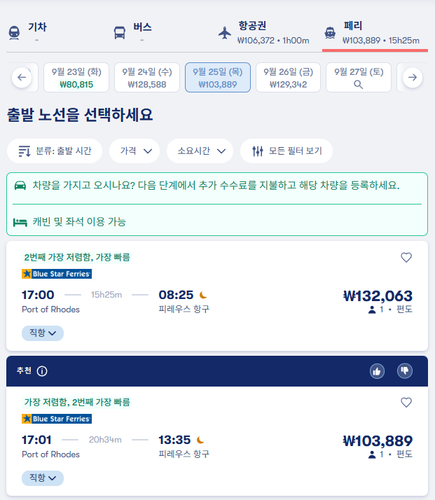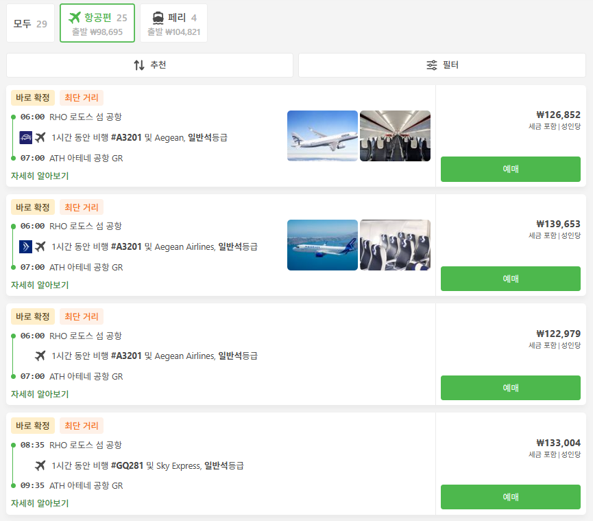 로도스에서 아테네로 이동하는 교통편은 유명한 12go사이트를 비롯해 omio 사이트를 함께 비교해서 가성비 좋은 교통편을 이용하시는 것이 좋습니다.
