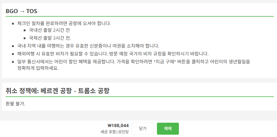 #베르겐에서트롬쇠항공요금