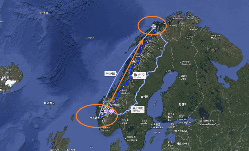 #베르겐에서트롬쇠까지거리