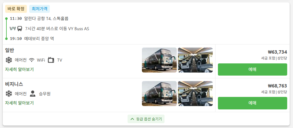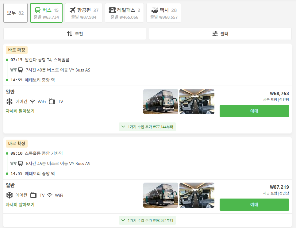 출발/도착지: 스톡홀름에서는 주로 시티터미널(Stockholm, Cityterminalen)에서 출발해요.