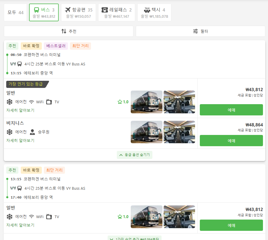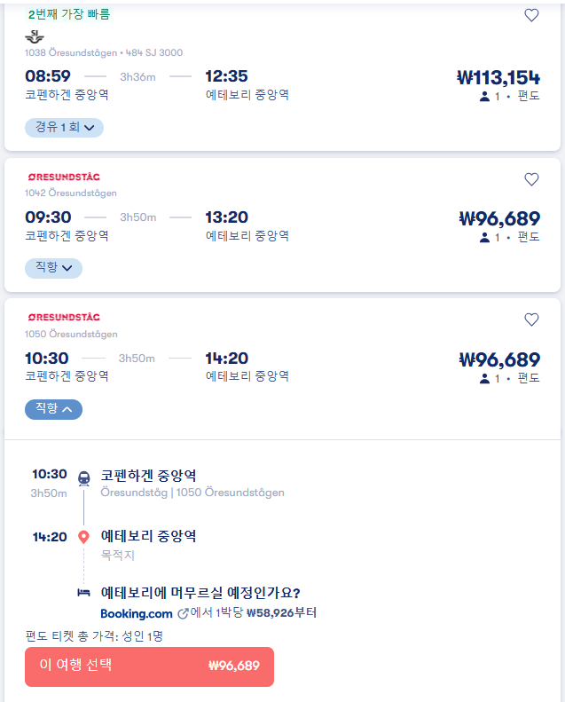 코펜하겐에서 예테보리로 이동하는 교통편은 유명한 12go사이트를 비롯해 omio 사이트를 함께 비교해서 가성비 좋은 교통편을 이용하시는 것이 좋습니다.