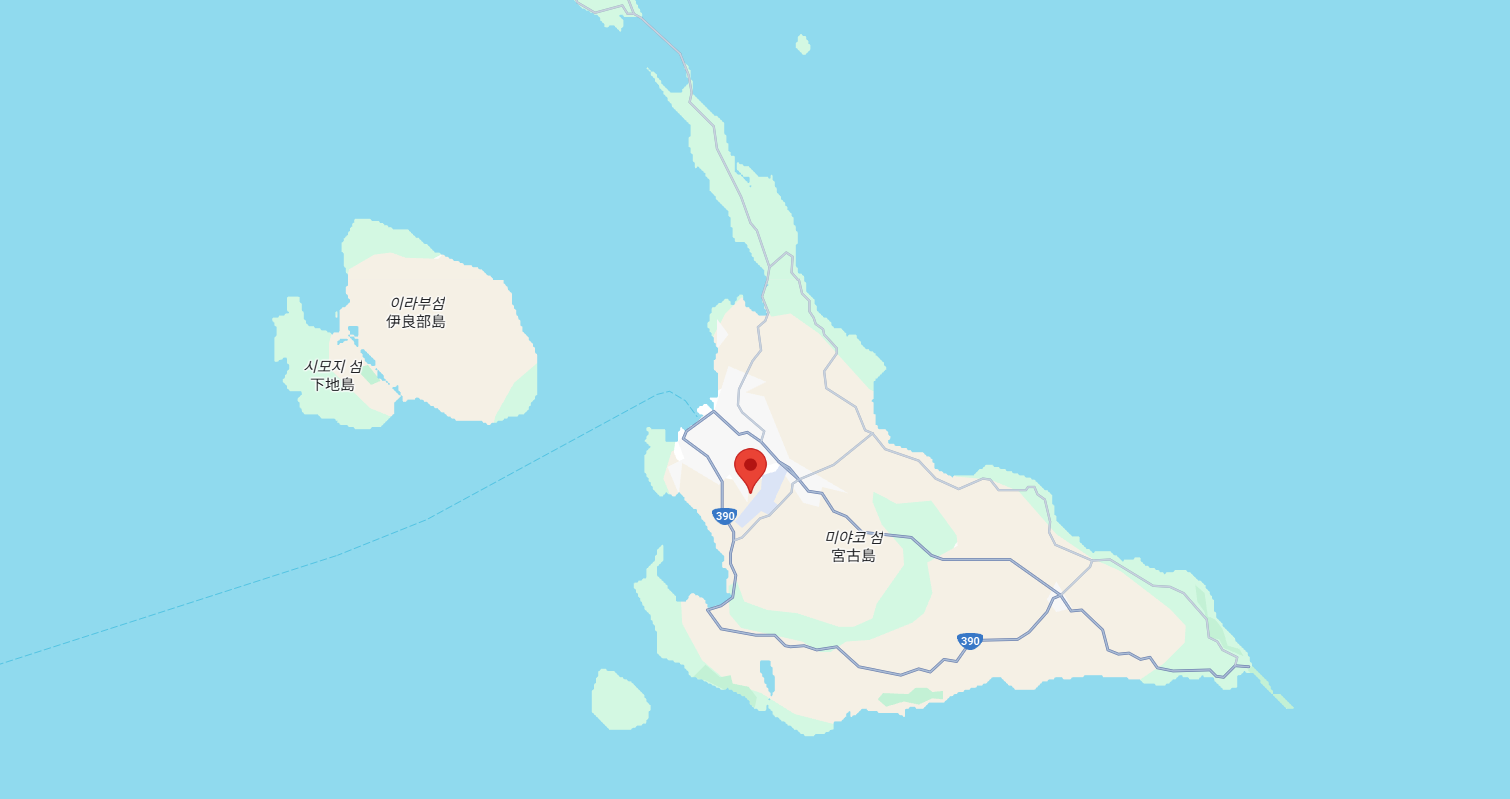 오키나와 본섬에서 미야코지마까지는 남서쪽으로 약 280km에서 300km 정도 떨어져 있어요. 미야코지마는 10개의 유인도로 이루어진 미야코 제도 중에서 가장 큰 섬인데요. 지도로 보면 대만과도 가까운 일본 최남단에 위치하고 있답니다.