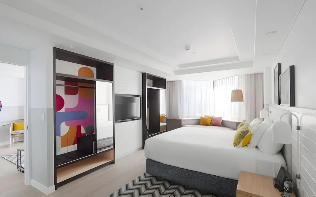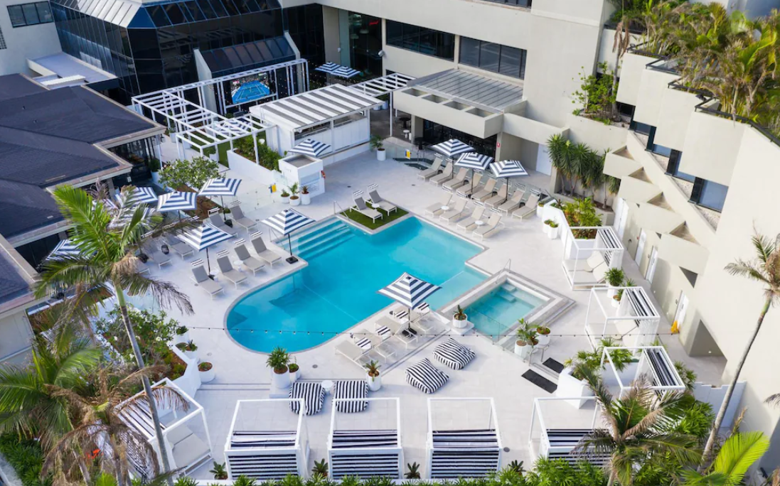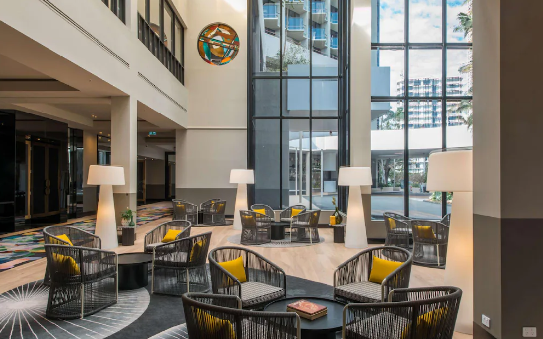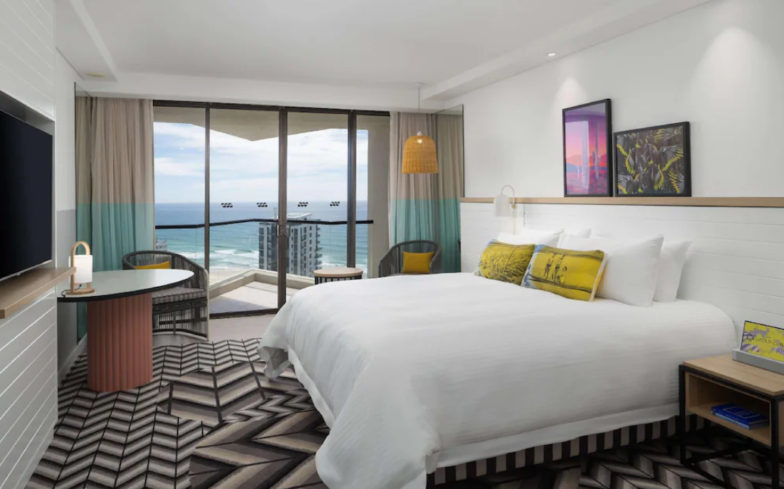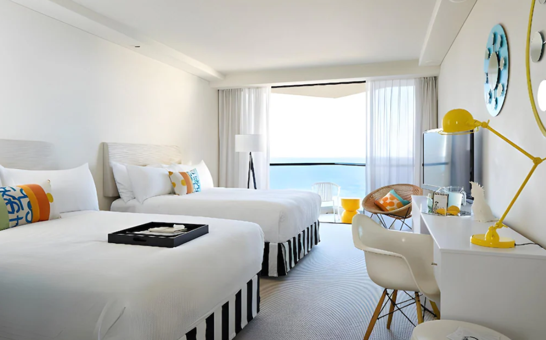 골드코스트 가족여행에서 추천하는 숙소 QT 골드코스트 호텔의 매력은 “센스 있는 감성+실용적인 가족 편의”의 조합이에요. 먼저 이곳은 서퍼스 파라다이스 끝자락에 위치해 번화가와 적당히 가깝지만 비교적 한적한 분위기를 누리기 좋아요. 해변까지는 도보로 금방이고, 트램 정류장 접근도 수월해 유모차나 짐이 많을 때도 동선이 편합니다. 가족여행에서 가장 중요한 건 피곤하지 않은 이동이잖아요.