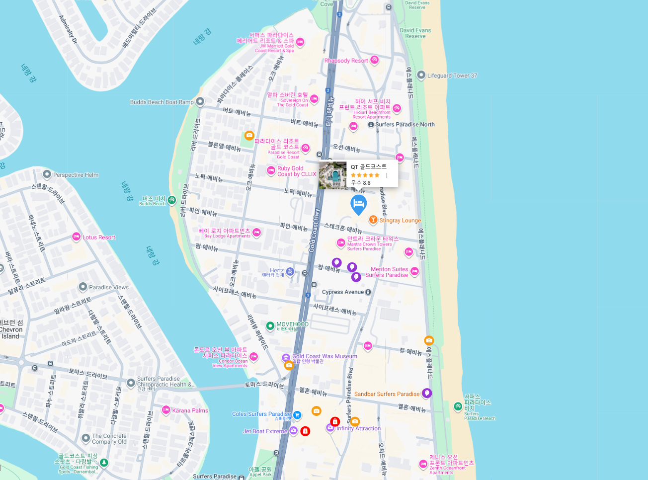 QT 골드코스트 호텔 주변 맛집과 카페