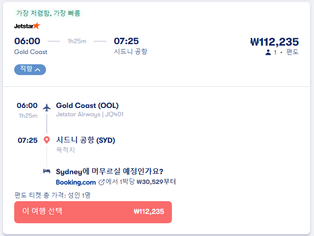 골드코스트여행 / 골드코스트에서 시드니로 이동하는 교통편; 최저항공요금과 버스 이동시간 및 요금 비교, 온라인 예약사이트