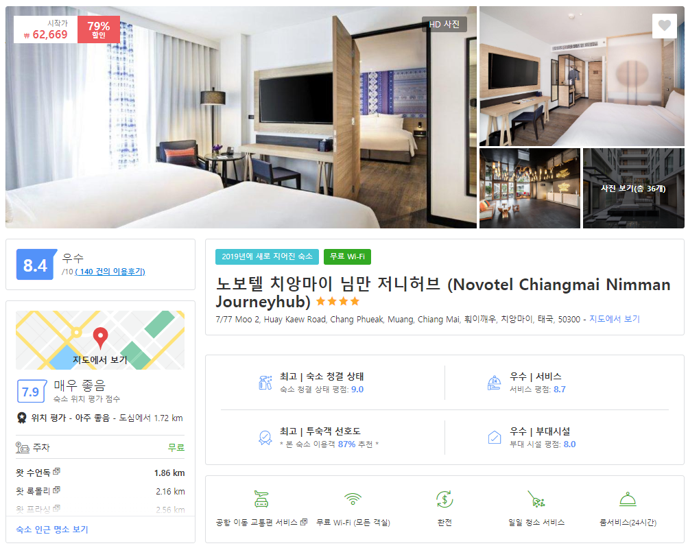 노보텔 치앙마이 님만 저니허브 (Novotel Chiangmai Nimman Journeyhub) 는 치앙마이 마야몰에서 도보로 5분정도 거리에 있으며 신축이라 깨긋할 뿐만아니라 침대컨디션도 최고입니다. 주변에 브런치 식당들도 많이 있고, 현대적인 시설과 조용하게 휴식을 취하기 좋은 분위기의 직원분들도 영어 잘하고, 치앙마이여행을 더욱 기억에 남게 만들어주는 치앙마이 핫호텔입니다.