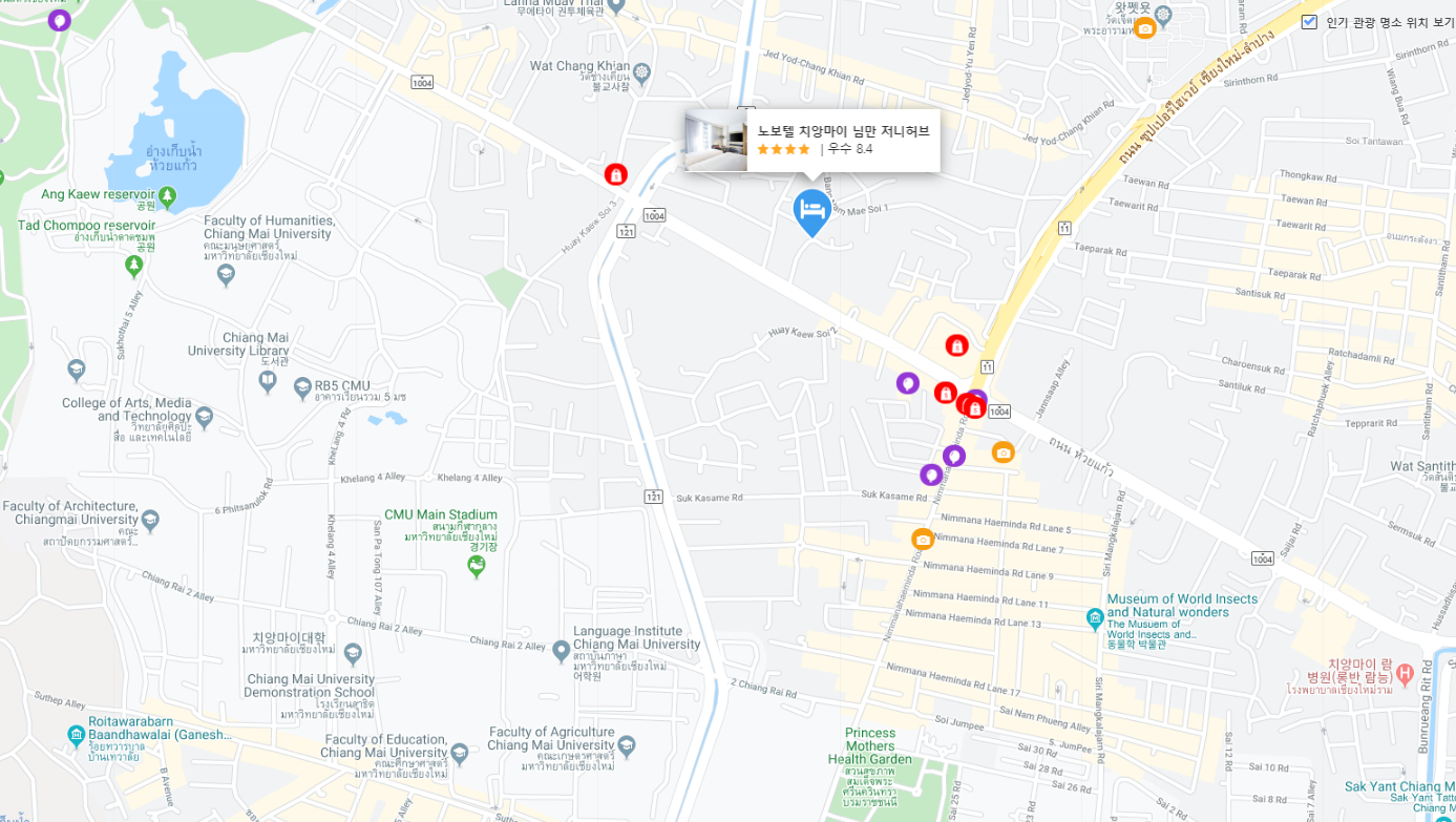 치앙마이의 편리한 위치에 있는 노보텔 치앙마이 님만 저니허브 (Novotel Chiangmai Nimman Journeyhub)에서 여행을 시작해 보세요. 이 곳에서 생동감 넘치는 도시의 많은 것을 최대로 즐길 수 있습니다. 본 숙소는 도시의 필수 관광 명소에 손쉽게 접근할 수 있는 편리한 위치를 자랑합니다.