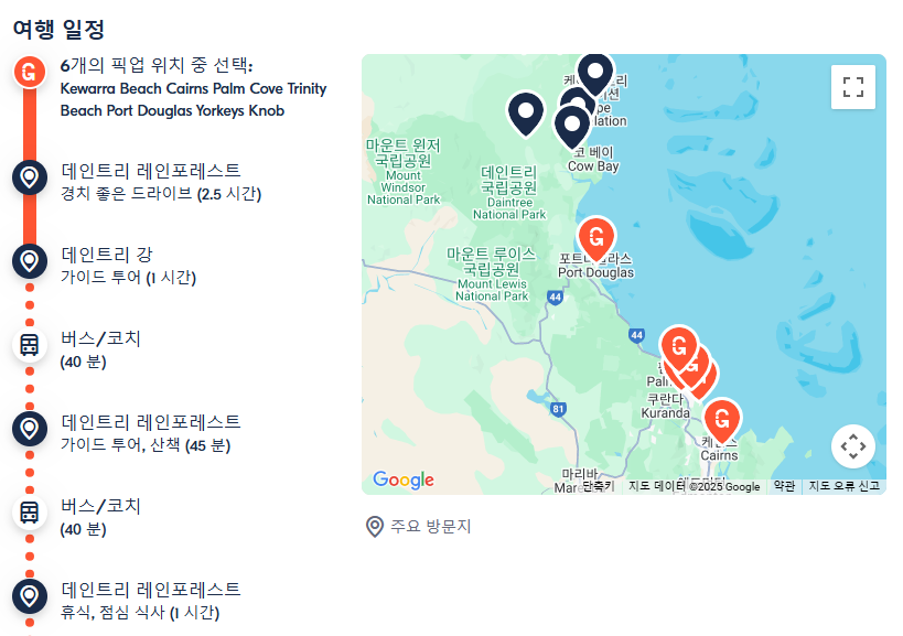 편안한 이동과 접근성: 케언즈에서 출발하니, 번거롭게 대중교통을 알아보거나 직접 운전할 필요 없이 편안하게 왕복 이동이 가능해요. 특히 데인트리 열대우림 깊숙한 곳이나 케이프 트리뷸레이션으로 향하는 길은 험준할 수 있는데, 4륜구동 차량이 있으니 안심하고 구석구석을 탐험할 수 있다는 점이 큰 장점이죠.
