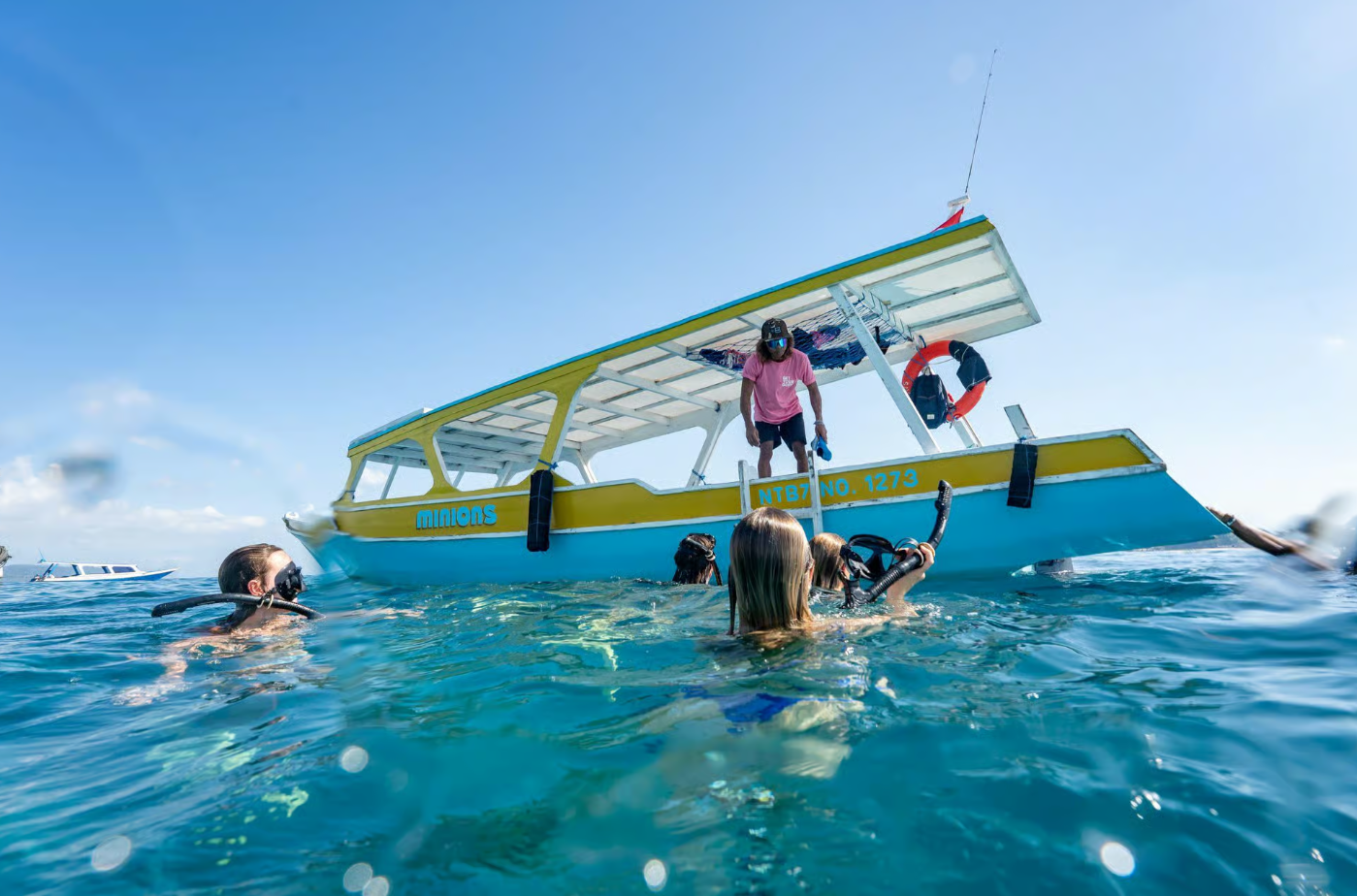 먼저 개인 스노클링 보트 투어는 말 그대로 보트를 전세 내어 우리만의 시간을 오롯이 즐길 수 있다는 점이 가장 큰 장점이에요. 출발 시간부터 들르고 싶은 스노클링 포인트, 각 장소에서의 체류 시간까지 모든 것을 우리 마음대로 조절할 수 있습니다. 바다거북을 더 오래 보고 싶다거나, 특정 산호 군락에서 시간을 보내고 싶을 때, 아니면 인파를 피해 조용한 곳에서 여유롭게 즐기고 싶을 때 개인 보트가 빛을 발하죠. 다른 사람들과 스케줄을 맞출 필요 없이 우리 그룹만의 속도와 취향에 맞춰 자유롭게 이동하며 프라이빗한 경험을 할 수 있다는 점이 큰 매력이랍니다. 신혼여행객이나 가족 단위 여행객, 또는 정말 나만의 특별한 경험을 원하시는 분들께 특히 추천해요.