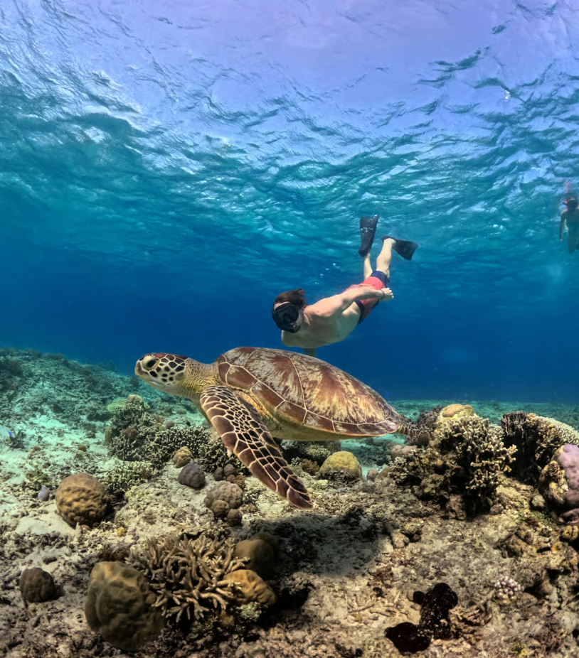 길리 제도의 스노클링은 그야말로 눈부신 수중 세계로의 초대입니다. 따뜻하고 에메랄드빛 바다는 시야가 매우 좋아서 햇살 아래 반짝이는 산호초와 그 사이를 유유히 헤엄치는 다채로운 열대어들을 선명하게 만날 수 있어요. 특히, 길리 섬에서는 아름다운 바다거북들을 만나는 것이 어렵지 않답니다. 유유자적 헤엄치는 거북이들과 함께 물속을 유영하는 순간은 마치 꿈속에 있는 듯한 기분을 느끼게 해줄 거예요.