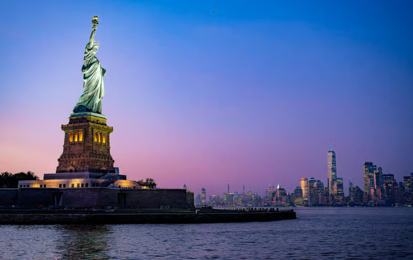 다음으로는 역사와 상징성을 지닌 엘리스섬과 세계적인 랜드마크인 자유의 여신상을 지나가게 됩니다. 크루즈 위에서 바라보는 자유의 여신상은 그 웅장함이 더욱 생생하게 다가올 거예요. 밤에는 조명을 받아 더욱 아름다운 모습을 볼 수 있겠네요!