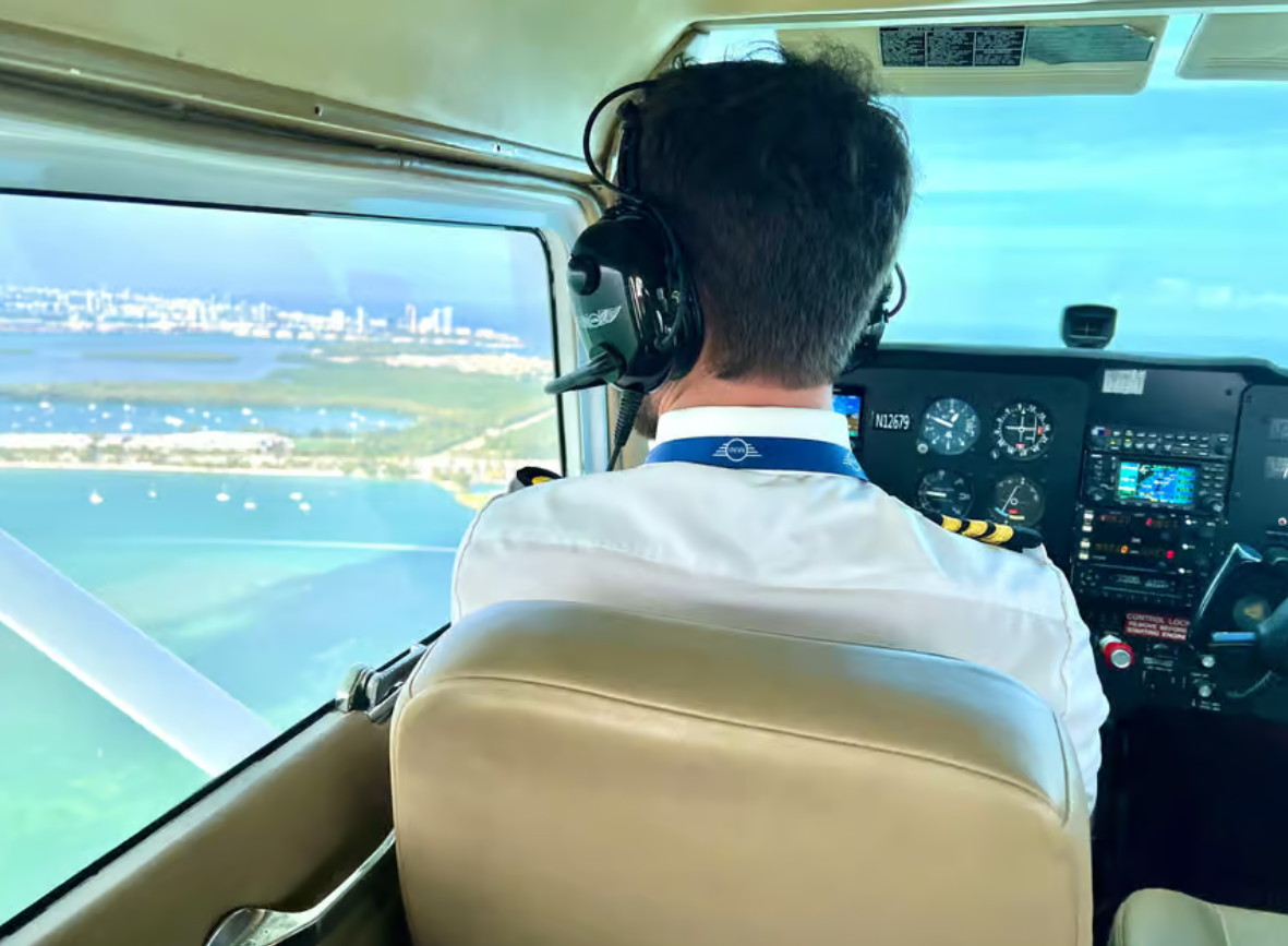 이 특별한 비행은 미팅장소에서 만나 비행기를 타기 위해 마이애미 이그제큐티브 공항으로 이동합니다. 공항에 도착하면 먼저 친절한 파일럿과 스태프가 반갑게 맞이해 줄 겁니다. 번잡한 대형 공항과는 달리, 훨씬 프라이빗하고 여유로운 분위기 속에서 설레는 마음으로 탑승 준비를 시작하게 되실 거예요.