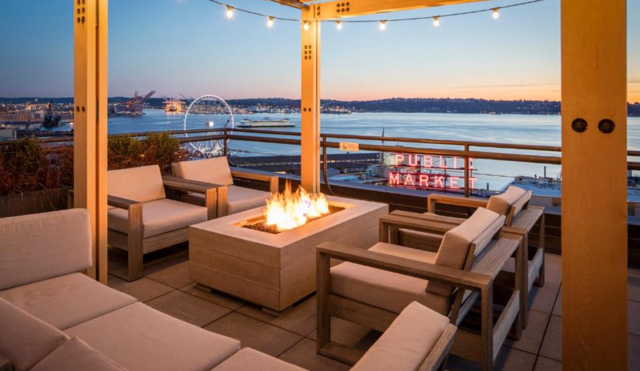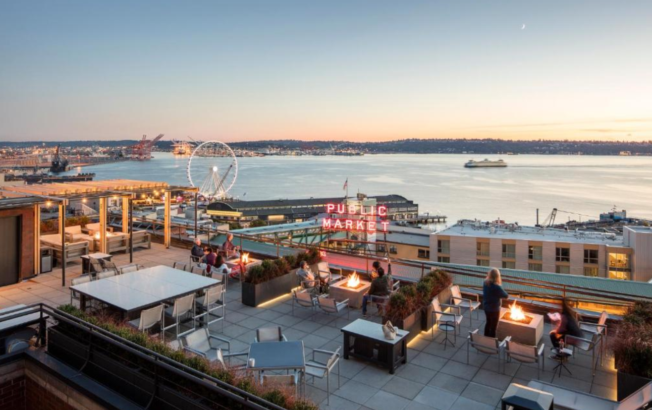 특히 호텔의 옥상 데크는 시애틀의 멋진 스카이라인과 엘리엇 베이의 탁 트인 전망을 감상할 수 있는 숨겨진 보석 같은 공간이에요. 이곳에서 가족들과 함께 시애틀의 아름다운 풍경을 배경으로 멋진 사진을 남기거나, 여유로운 시간을 보내며 여행의 여유를 만끽할 수 있답니다. 시내 중심가에 있으면서도 편리한 대중교통 접근성을 자랑하며, 웨스트레이크(Westlake) 역과도 가까워 시애틀의 다양한 명소를 쉽게 오고 갈 수 있다는 점도 큰 장점이에요.
