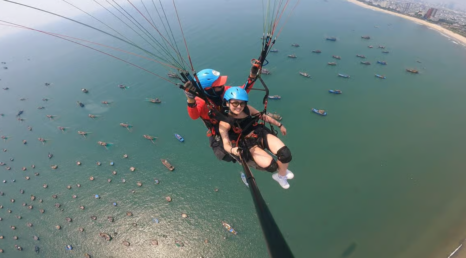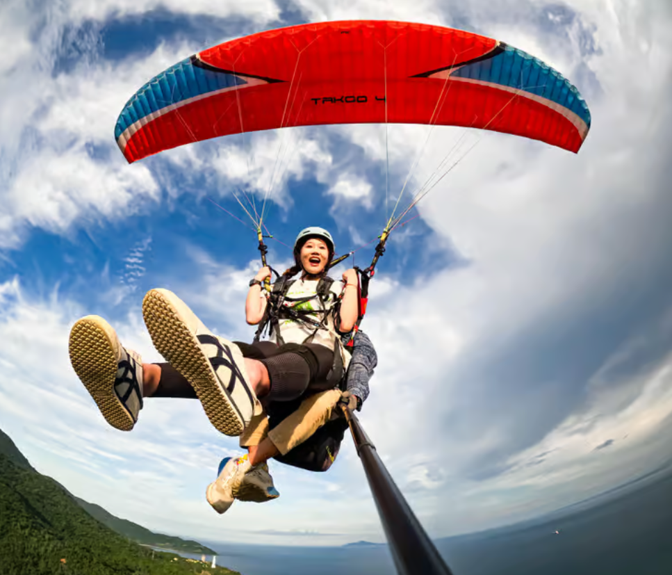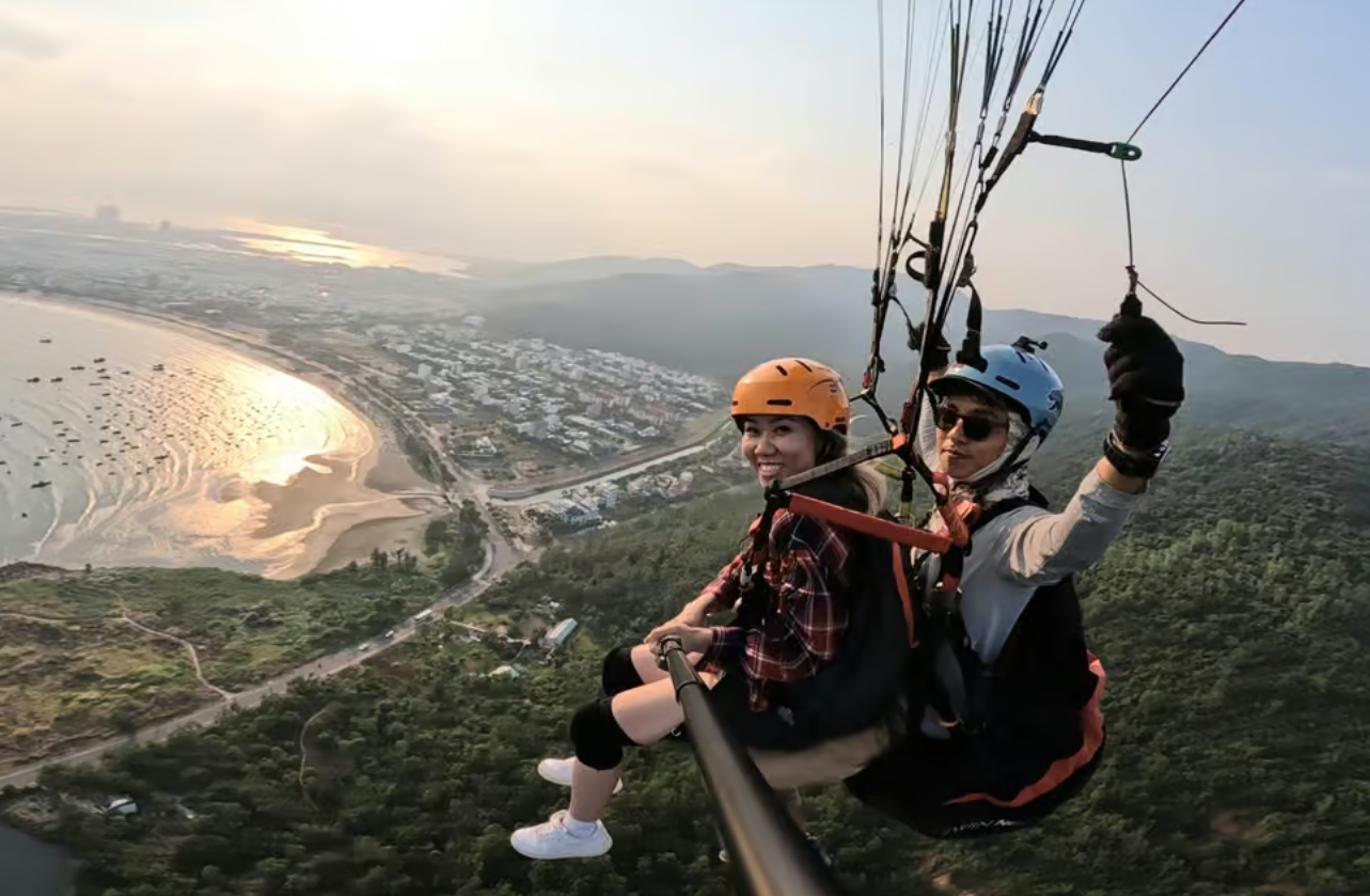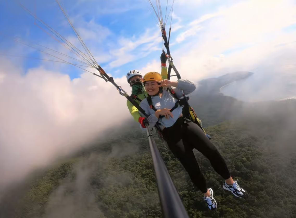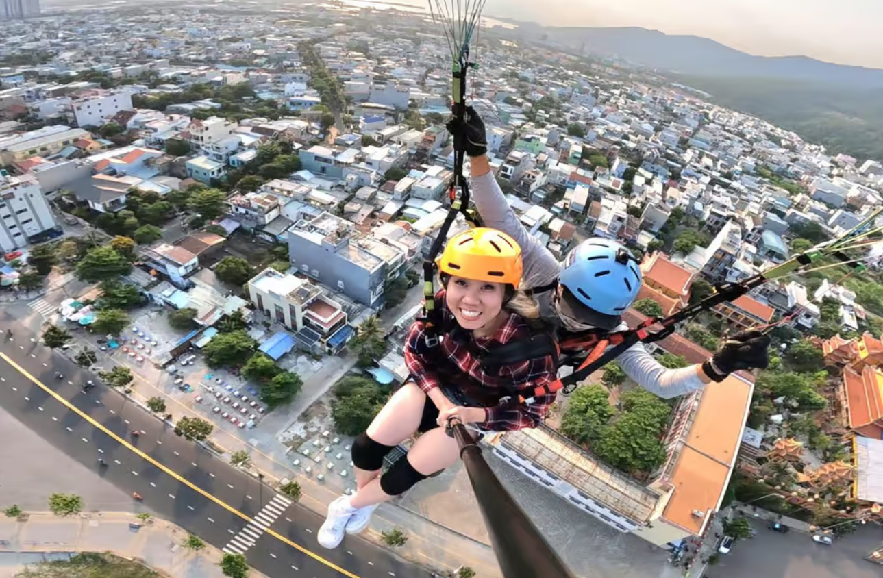 이제 드디어 하늘로 날아오를 시간! 노련한 조종사와 함께 바람을 타고 몽키 마운틴의 웅장한 자연과 다낭 해변의 아름다움을 눈앞에서 감상하는 순간은 정말 황홀할 거예요. 10~15분 동안 하늘 위를 유영하며 발아래 펼쳐진 그림 같은 풍경을 사진으로 담을 수도 있답니다.