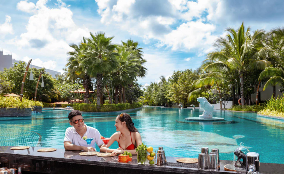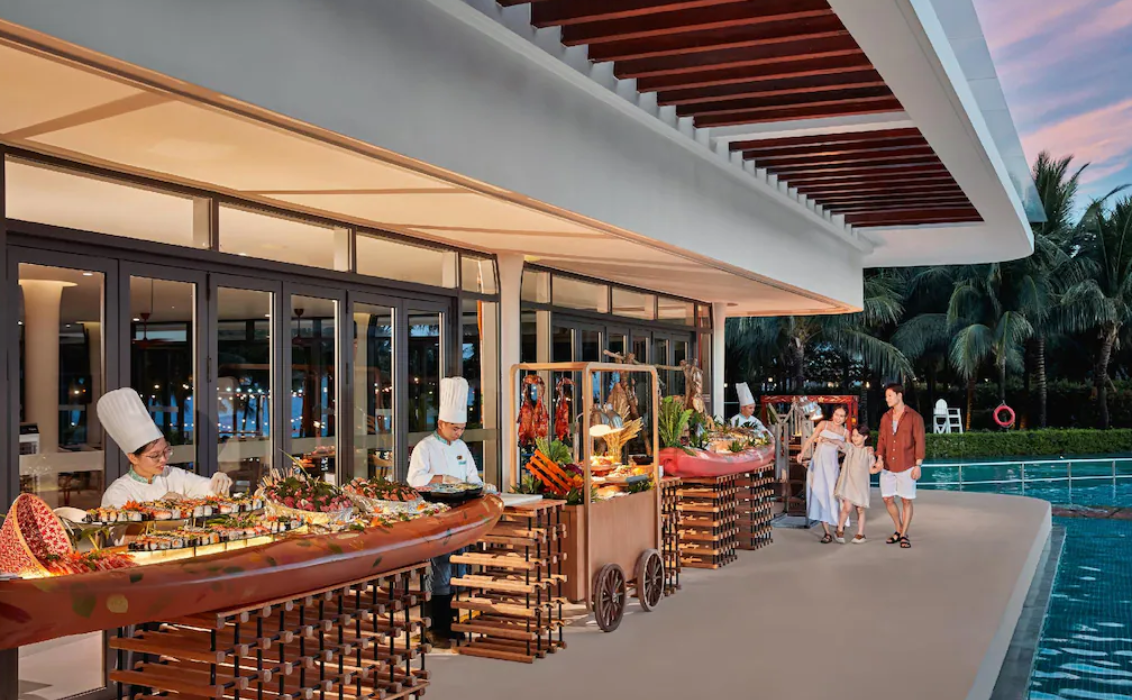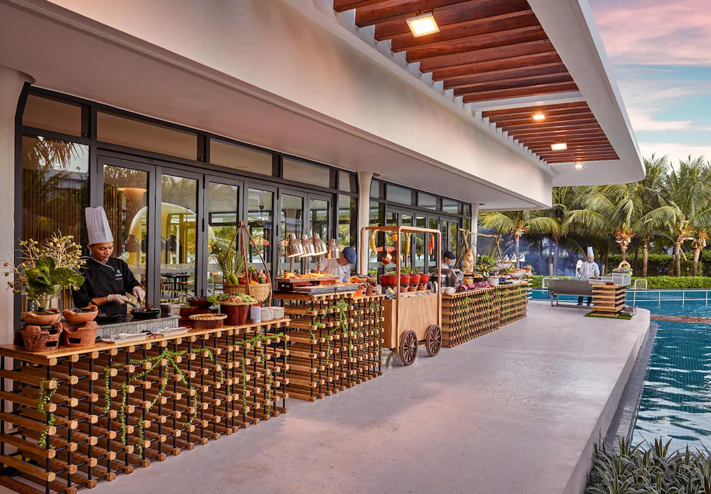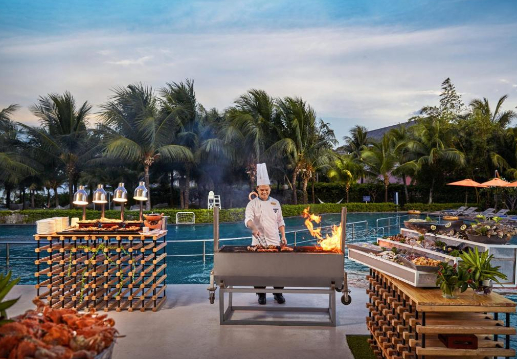 다이닝 옵션의 다양성: Mercato 레스토랑에서 베트남, 아시아, 인터내셔널 요리를, 클럽하우스에서 신선한 해산물과 바비큐를 즐길 수 있으며, 피자나 망고 주스 같은 간단한 메뉴도 선베드에서 QR코드를 통해 간편하게 주문할 수 있습니다.