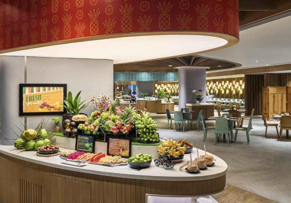 풍성한 조식 뷔페: 매일 메뉴가 조금씩 바뀌는 조식 뷔페는 쌀국수, 김치 등 한국인의 입맛에 맞는 메뉴까지 제공하여 만족스러운 식사를 할 수 있습니다.