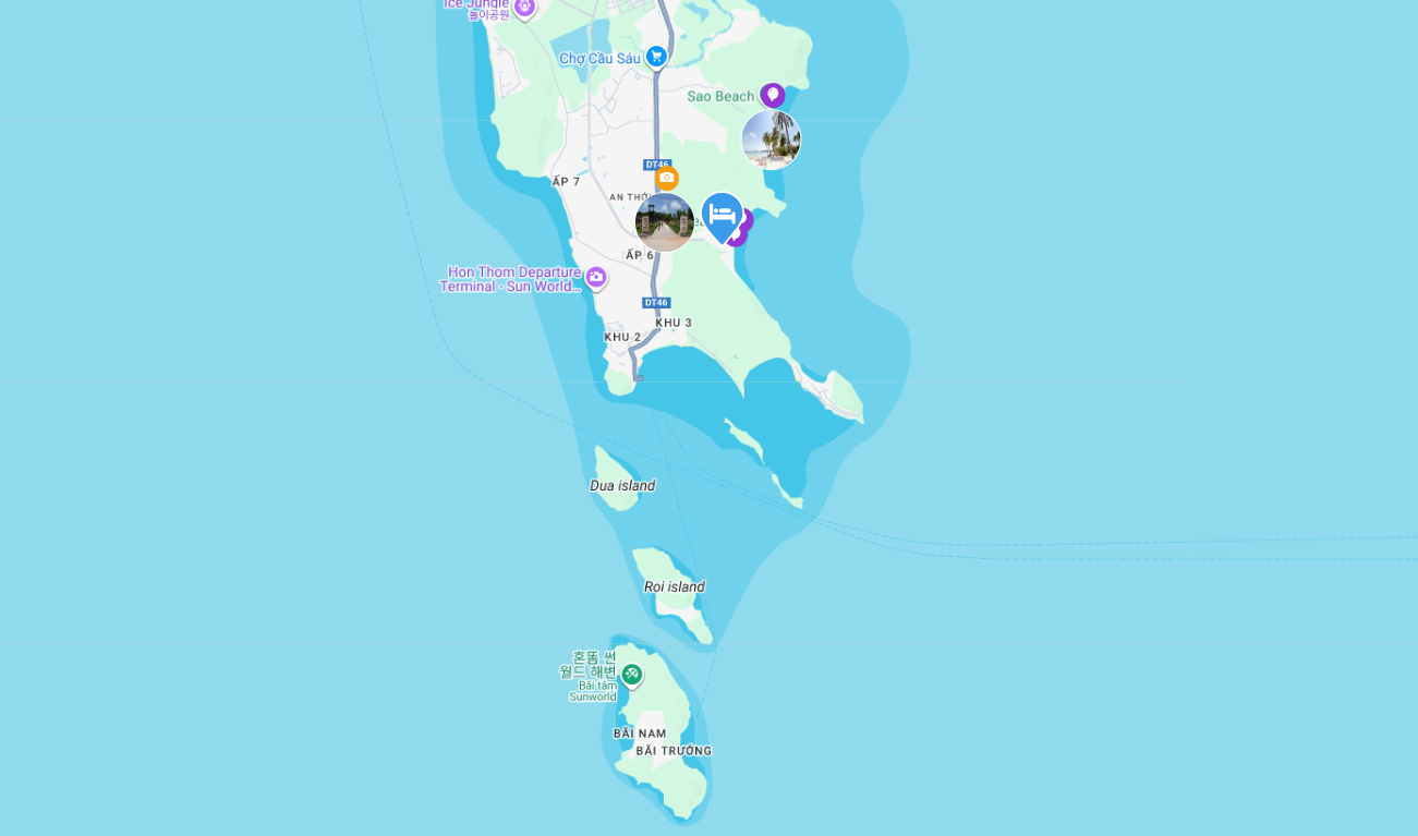주요 관광지와의 연계: 혼똠섬 케이블카와 같은 푸꾸옥 남부의 인기 명소와 가깝고, 즈엉동 중심가로의 이동도 편리합니다.