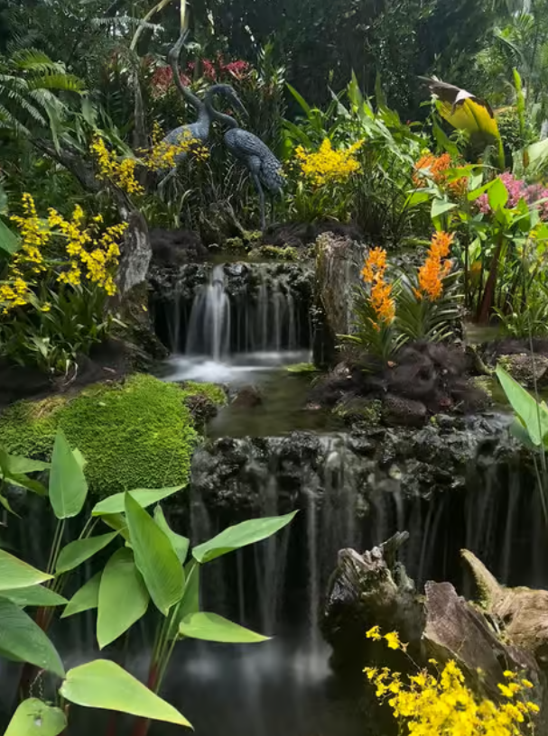 정원 곳곳에 자리한 아름다운 조경과 폭포 속 산책길도 그냥 지나칠 수 없는 매력 포인트예요. 국립 난초원까지 올라가는 길에도 예쁘게 조경이 되어 있고, 폭포 속을 걷는 듯한 길도 있어서 지루할 틈 없이 아름다운 경치를 감상할 수 있습니다. 특히 사진 찍는 것을 좋아하신다면 어디서든 멋진 배경이 되어줄 거예요! 예쁜 꽃들 사이에서 가족 사진을 남기며 소중한 추억을 만들어보세요.