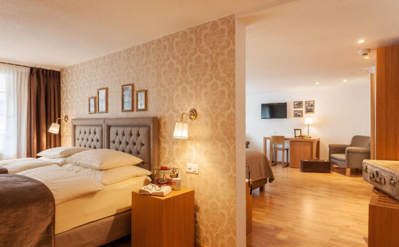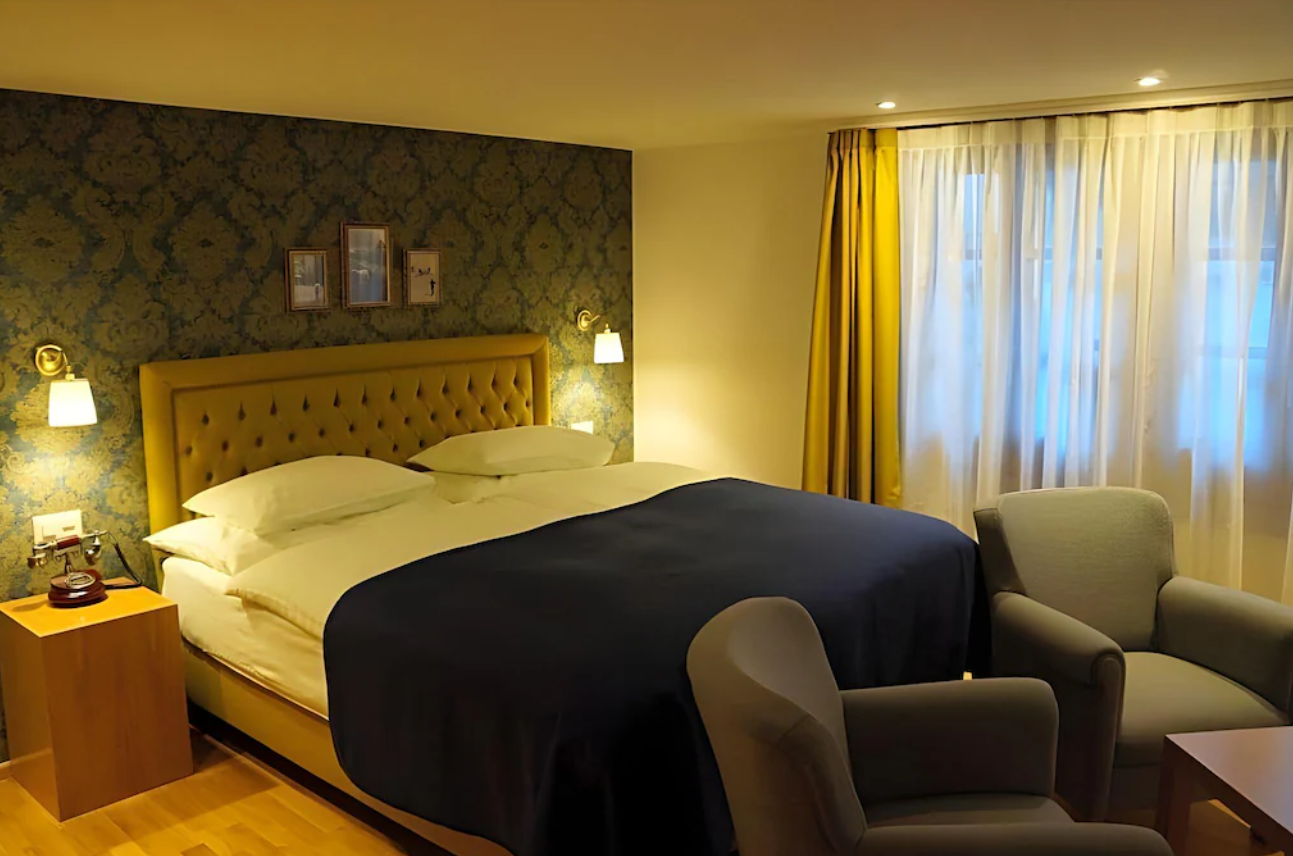 아늑하고 매력적인 분위기: 전형적인 발레 샬레 스타일의 건축물은 스위스의 전통적인 매력을 그대로 보여주며, 호텔 내부는 스위스 골동품으로 장식되어 독특하고 아늑한 분위기를 선사합니다. 깨끗하고 넓은 객실은 머무는 동안 편안함을 더해줍니다.