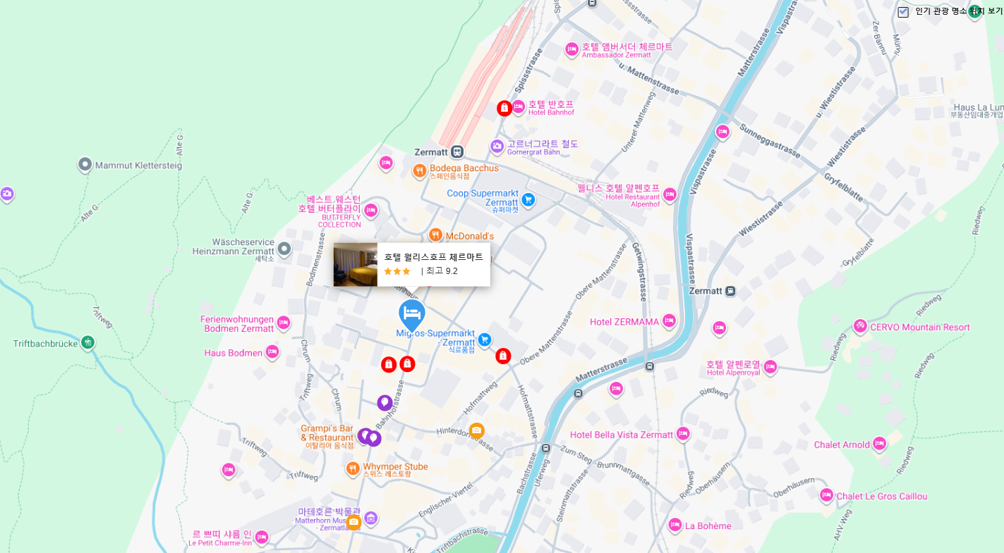 호텔 발리저호프 체르마트는 그야말로 체르마트 여행의 핵심에 자리하고 있어서 주변 환경과 주요 명소 접근성이 정말 탁월하답니다!