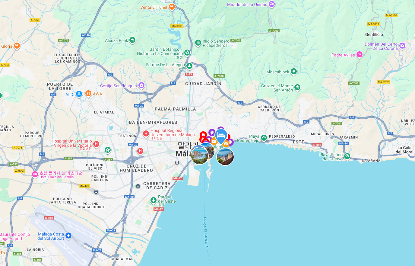 주요 명소와의 뛰어난 연결성: 말라가의 대표적인 문화유산인 알카사바나 말라가 피카소 박물관 등 시내 주요 명소까지 도보로 편리하게 이동할 수 있어요. 관광과 휴식의 균형을 완벽하게 맞춰주는 위치입니다.