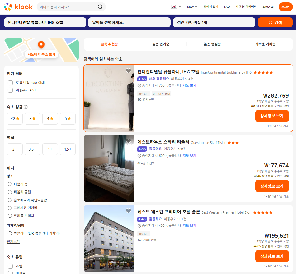 류블랴나호텔추천 / 슬로베니아 류블랴나여행에 시내 중심가 깨끗하고 고급스러운 호텔 헤리티