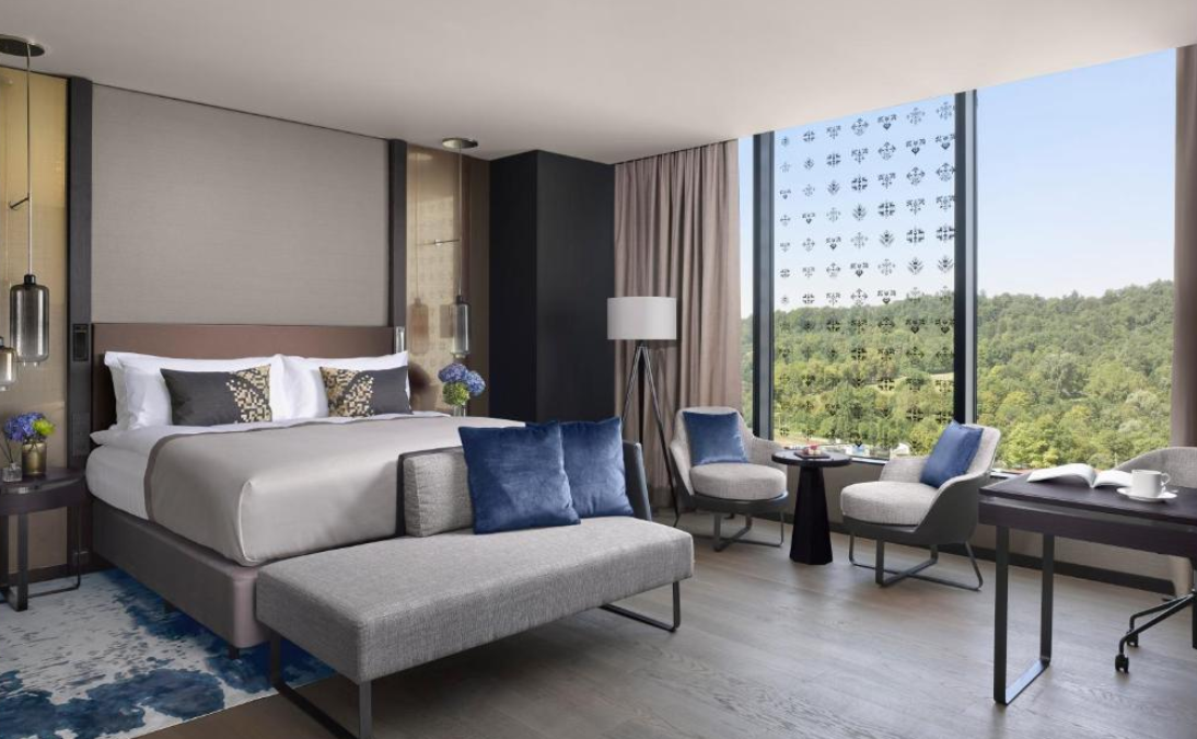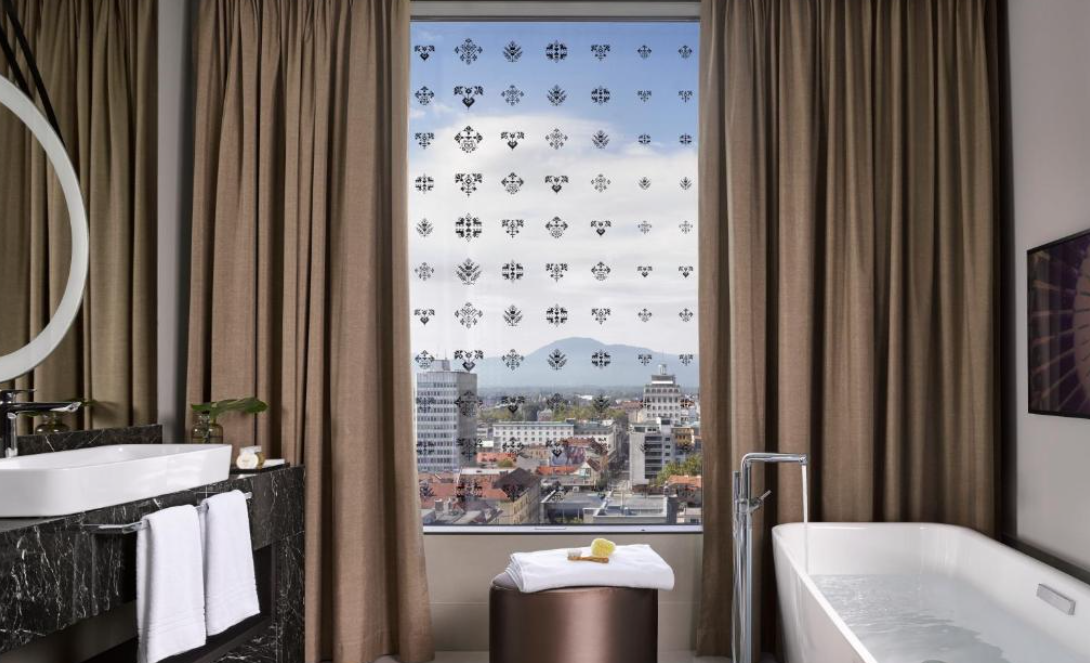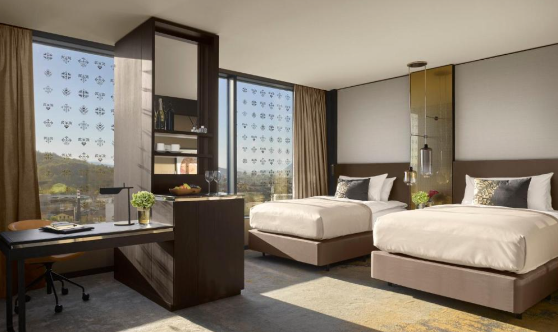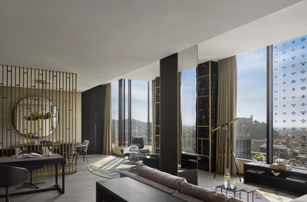 럭셔리하고 현대적인 시설: 2017년에 오픈한 5성급 호텔답게, 아이코닉한 유리 외관부터 내부까지 매우 현대적이고 럭셔리한 디자인을 자랑합니다. 객실은 우아한 대리석 욕실과 함께 편안함을 극대화하는 고급 침구류, 그리고 베개 종류 선택 옵션까지 갖추고 있어 섬세한 배려를 느낄 수 있죠. 특히, 객실에서 바라보는 류블랴나의 도시 전경은 그 자체로 그림 같은 경험을 선사합니다.