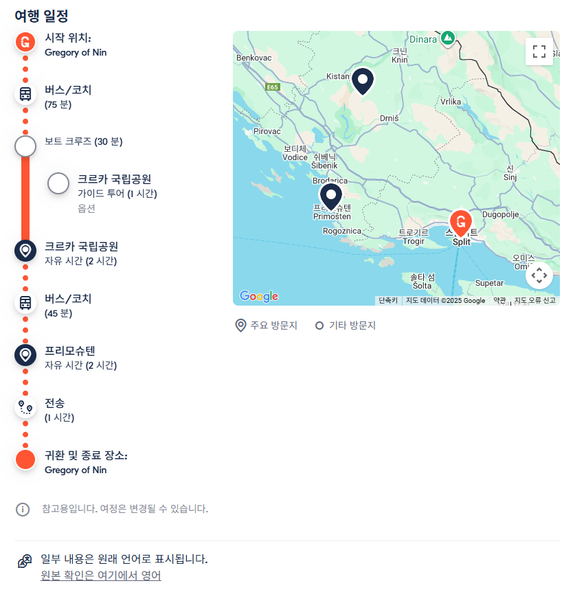 스플리트에서 출발하는 크르카 국립공원과 중세 마을 프리모슈텐 투어는 정말 매력적인 여행 코스예요. 아드리아 해의 아름다움과 내륙의 자연 경관, 그리고 역사적인 마을의 정취까지 한 번에 느낄 수 있는 환상적인 여정이 될 거예요.
