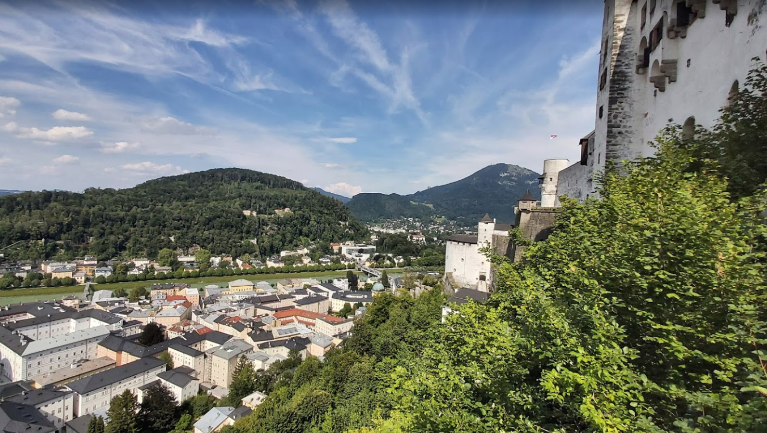 언덕 정상에 도착하면, 대주교의 도시와 잘츠부르크 산의 아름다운 풍경 위로