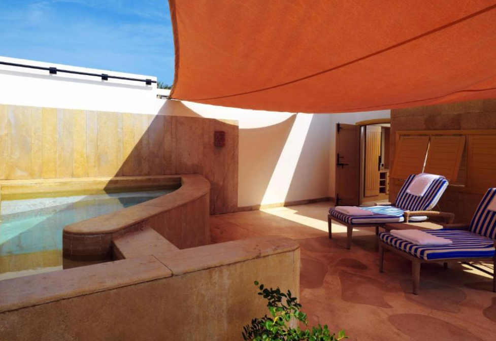 리조트에 도착하는 순간, 눈앞에 펼쳐지는 그림 같은 전용 해변에 마음을 빼앗길 거예요. 붉은 바위와 에메랄드빛 바다가 어우러진 해변을 거닐며 여유를 만끽하거나, 따뜻한 햇살 아래 누워 모든 근심을 잊을 수 있죠. 특히 이곳은 스노클링을 좋아하는 분들에게 천국과 다름없을 거예요. 리조트 바로 앞에서 펼쳐지는 바다에는 형형색색의 열대어들과 살아있는 산호초가 가득해, 마스크만 쓰고 물에 들어가도 신비로운 수중 세계를 만날 수 있답니다. 전용 해변뿐만 아니라, 리조트 내부에는 4개나 되는 야외 수영장이 마련되어 있어, 어디에서든 시원하게 물놀이를 즐기며 휴가를 만끽할 수 있습니다. 피트니스 센터도 있어서 여행 중에도 활기찬 컨디션을 유지할 수 있겠죠.