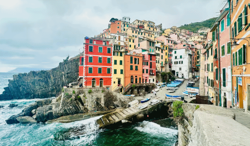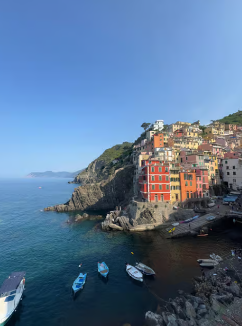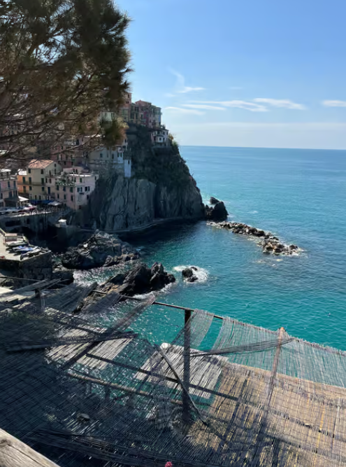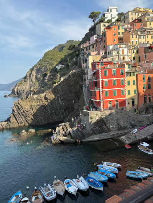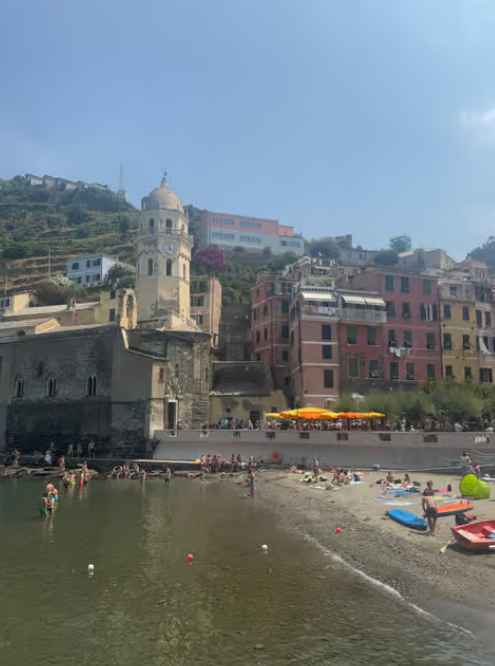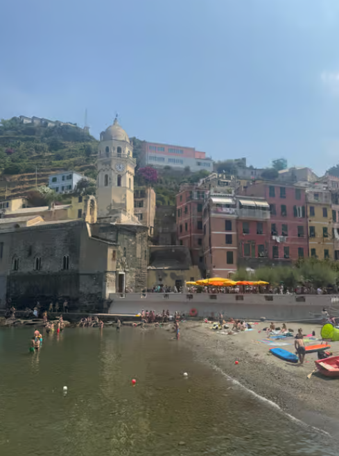 마나롤라 (Manarola)의 '제주 황우지선녀탕' 같은 수영 스팟과 일몰: 마나롤라는 워낙 사진으로 유명하지만, 마을 해안가에 파도가 잔잔한 암석 수영장이 있어요. 마치 제주도의 황우지선녀탕처럼 바위로 둘러싸여 파도를 막아주는 형태라 안전하고 신비로운 수영 경험을 선사합니다. 해변은 아니지만 물놀이하기 좋으니 꼭 한번 발을 담가보세요! 저녁에는 아름다운 노을이 마을을 황금빛으로 물들이는 장관을 감상하며 인생 사진을 남겨보시길 추천해요.
