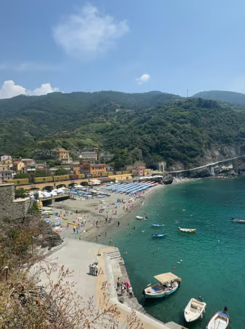 몬테로소 알 마레 (Monterosso al Mare)의 '안전한' 해변: 친퀘테레의 다섯 마을 중 유일하게 긴 모래 해변을 가지고 있어서 한국의 해수욕장처럼 편안하게 물놀이를 즐길 수 있는 곳이에요. 다른 마을들이 암석 해변이거나 항구에 가까워 수영하기 쉽지 않은 편이라, 이곳에서 샤워 시설까지 갖춰진 깨끗한 해변을 만나는 건 의외의 즐거움이 될 수 있답니다. 해변에서 여유롭게 일광욕을 즐기며 진정한 휴양을 경험해보세요.