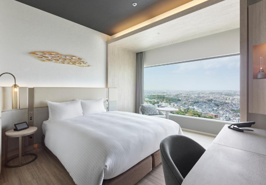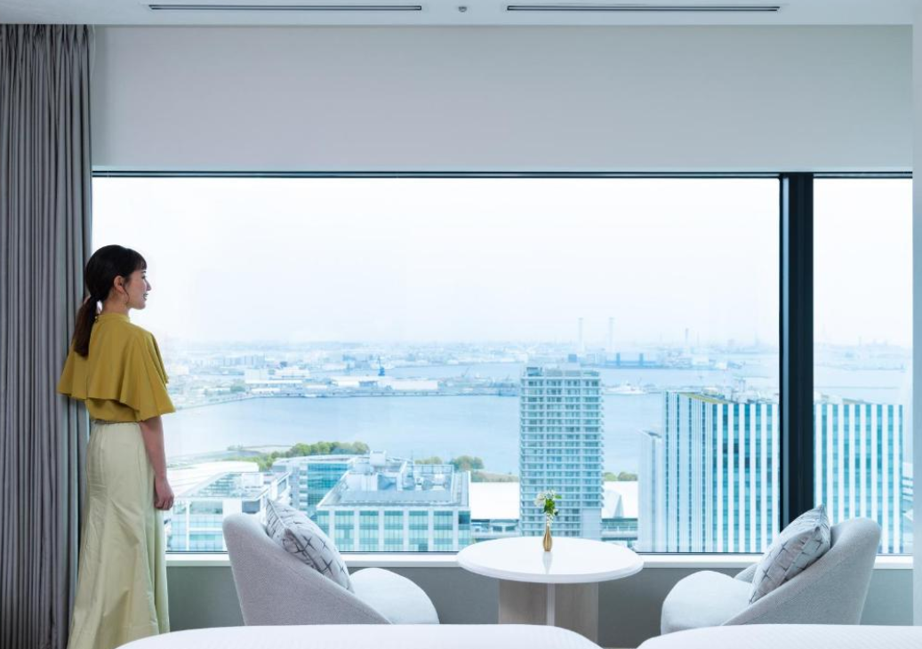 객실은 넓지는 않지만 효율적이고 세련된 인테리어로 꾸며져 있으며, 최신 설비를 완비해 쾌적함을 제공합니다. 특히 객실 내 소니 블루투스 스피커, 멀티 충전 콘센트, 가습기 및 공기청정기 등이 준비되어 있어 편리함과 쾌적함을 동시에 느낄 수 있습니다. 객실에서는 요코하마 도심과 바다 전망을 즐길 수 있어 도시의 활기와 바다의 여유를 경험할 수 있습니다.