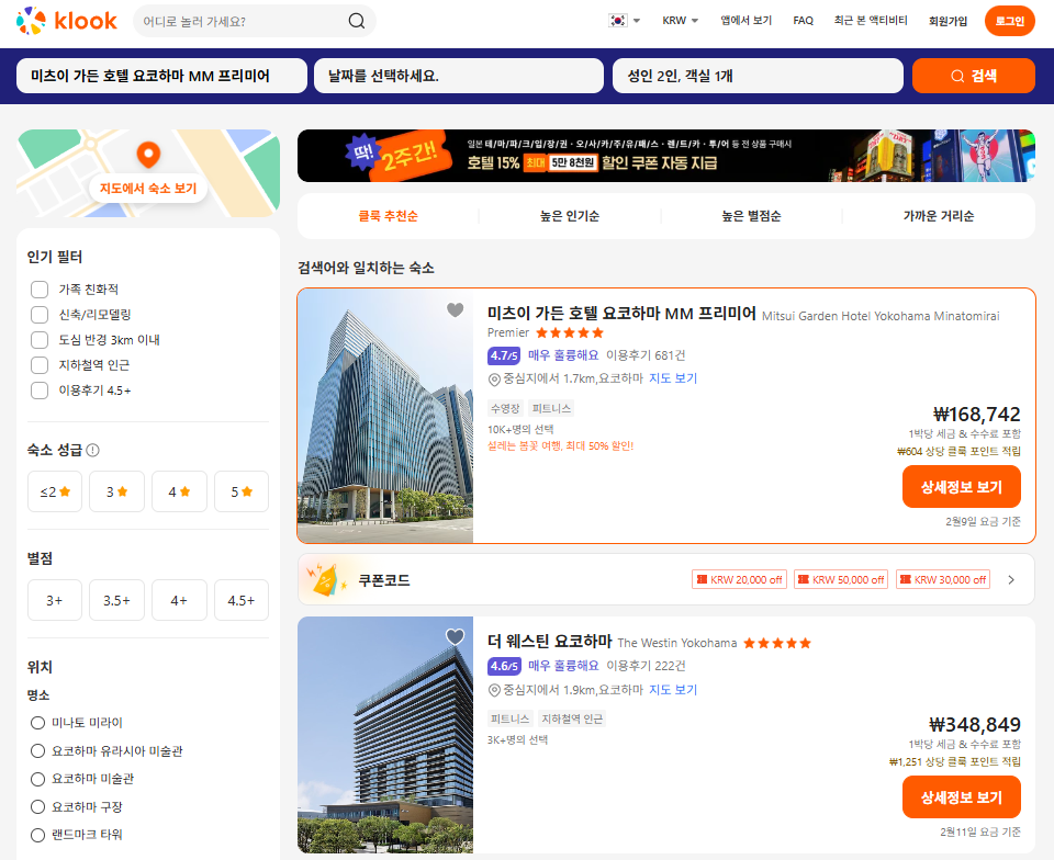 요코하마호텔추천 / 일본 요코하마여행의 위치좋고 대형쇼핑물 많은 지역의 편안한 숙소 요코하